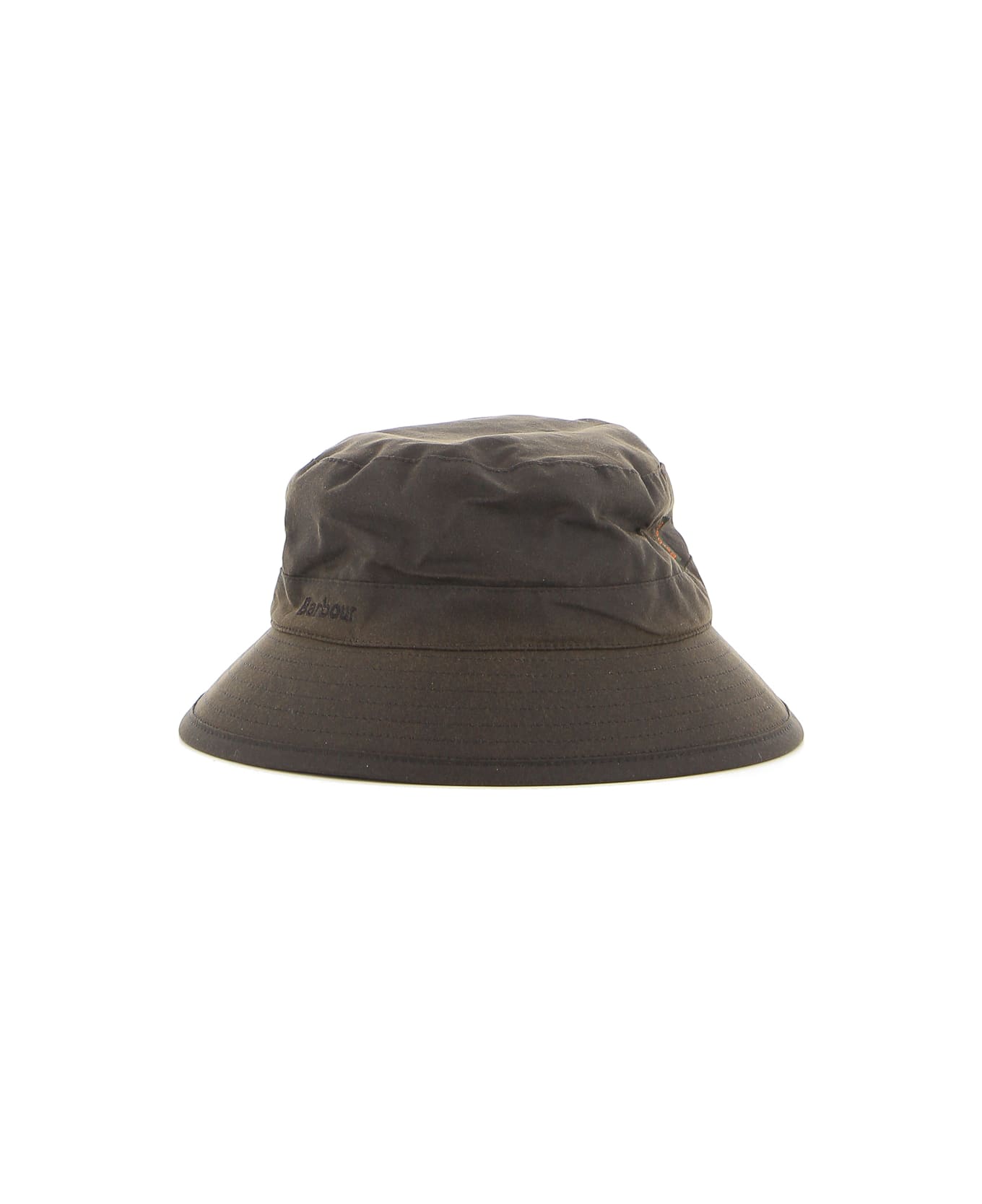 Barbour green cotton cap, rainproof fabric, cotton lining, logo detail.