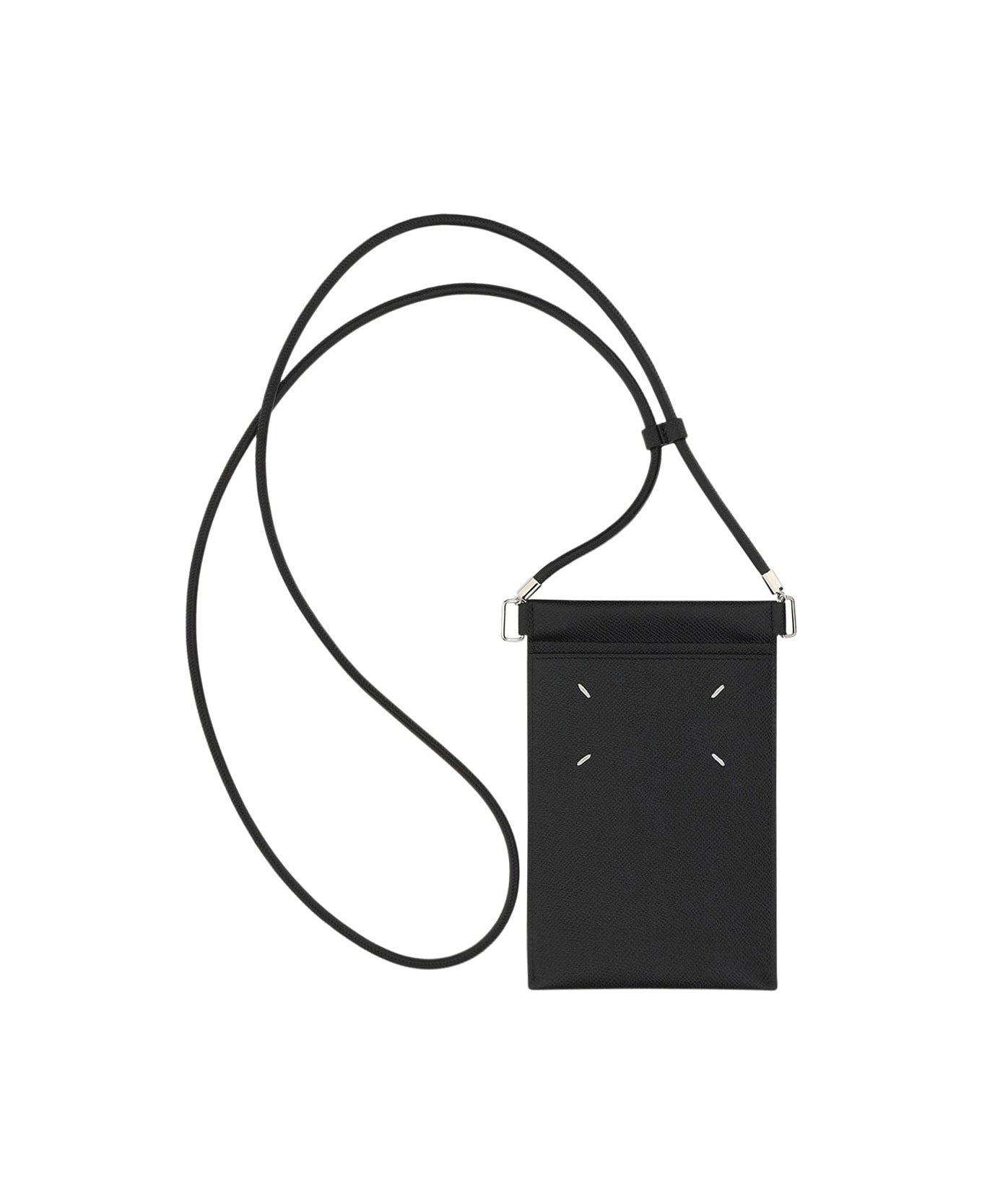 Calfskin phone case by maison margiela, leather shoulder strap to wear it around the neck, iconic brand stitching embroidered on the front, hammered leather design. Composition: 100% % Calf Leather Bos Taurus