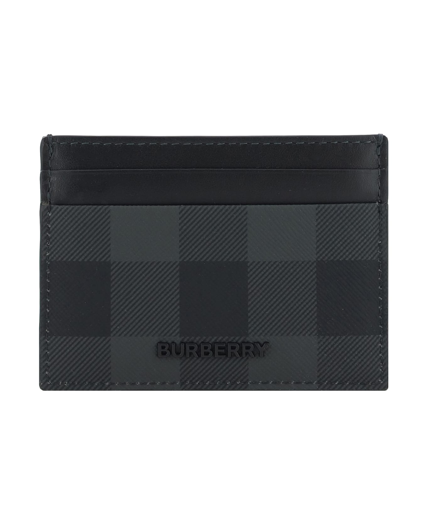 Sandon card holder by burberry, card slots on front and back, iconic brand monogram applied on front, all-over printed brand check archive design.