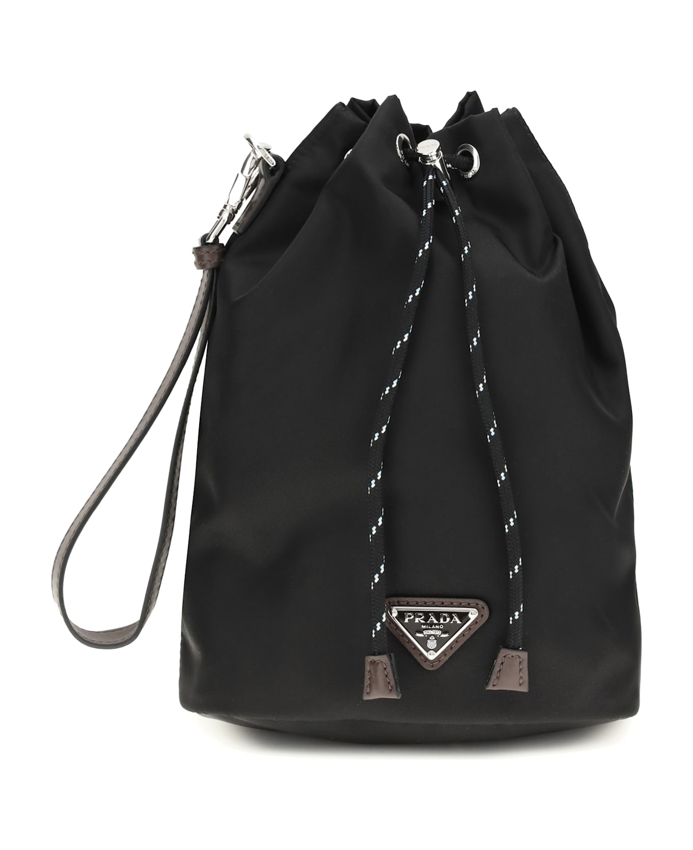 The speedrock re-nylon bucket bag by prada combines sustainability and contemporary style. featuring a removable leather wrist strap, drawstring closure and re-nylon lining, it is complemented by the distinctive enameled metal triangle logo for a stylish and functional design. Composition: 100% % Recycled Polyamide