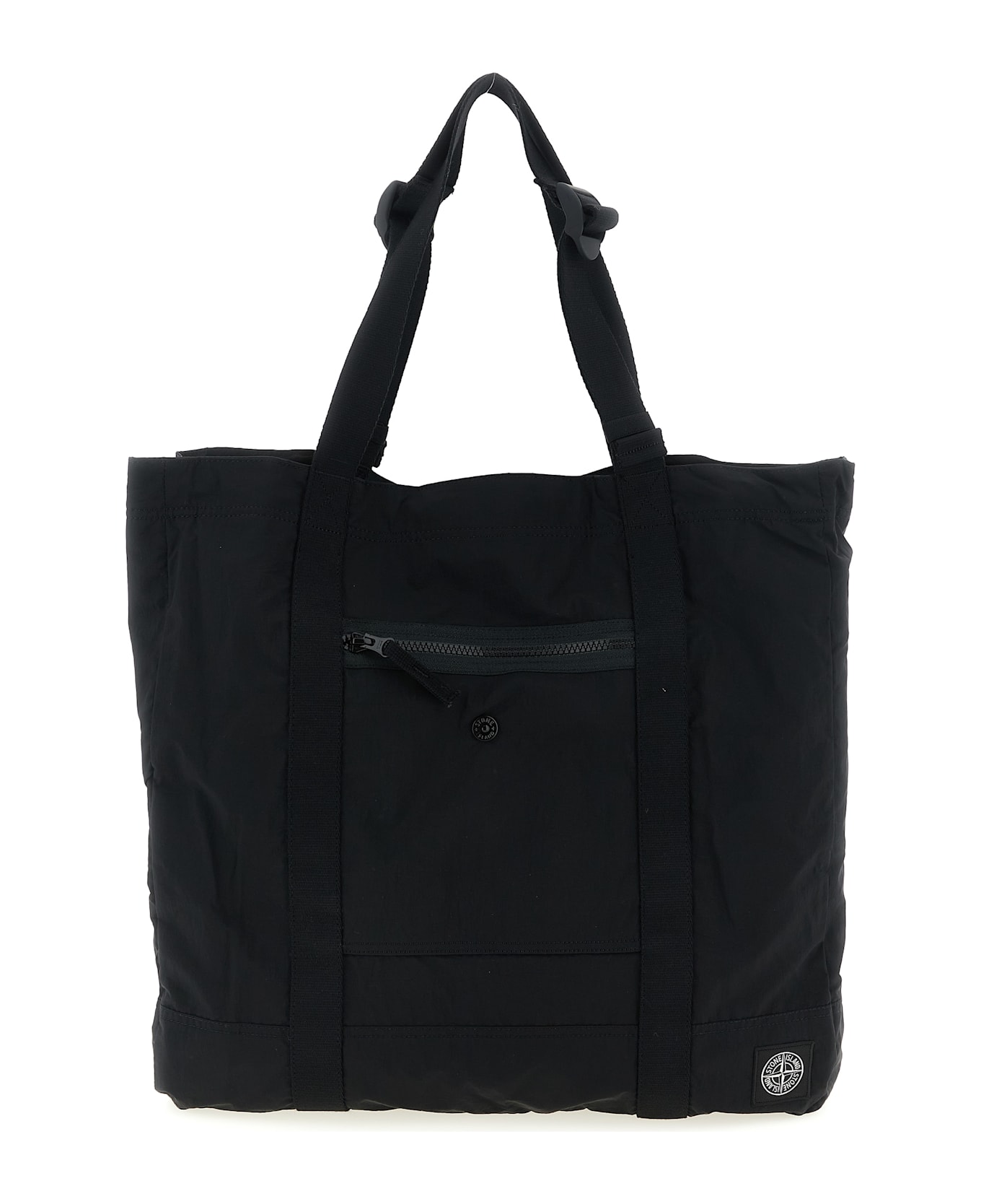 '9200012' shopping bag in garment-dyed Nylon Metal with a wrinkled-effect two-color recipe, polyurethane lining, 'Compass' logo patch and front zip pocket, internal snap button closure, double adjustable handle. SUSTAINABLE: This product is made of ECONYL regenerated nylon. ®