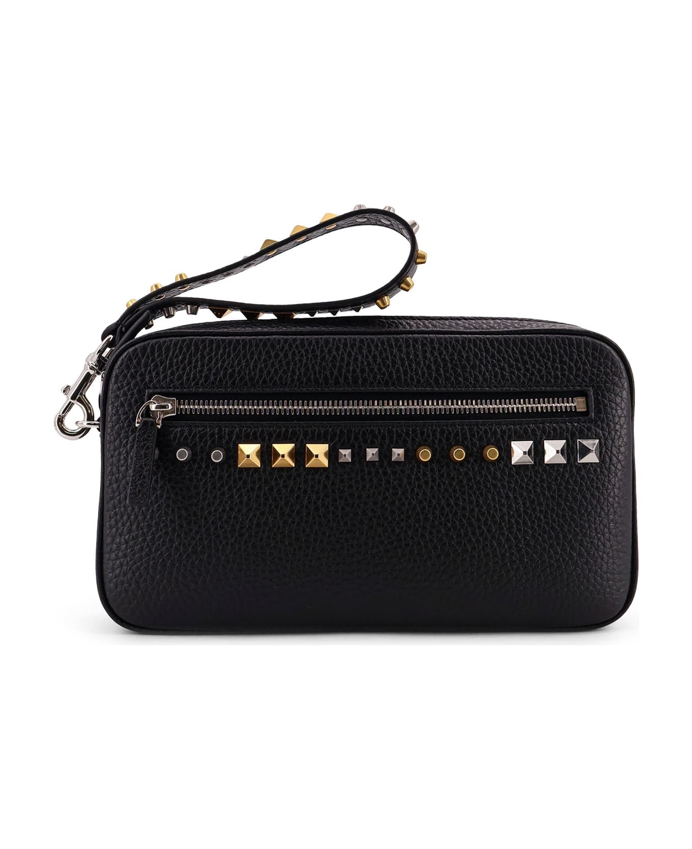 Zip closure Removable leather handle External zip pocket Iconic stud trim Three internal card slots VLogo Signature engraving Made in Italy Leather W: 24. 5cm x H: 13. 5cm x D: 4. 5cm SKU: 8Y2P0AX0VTJ0NO
