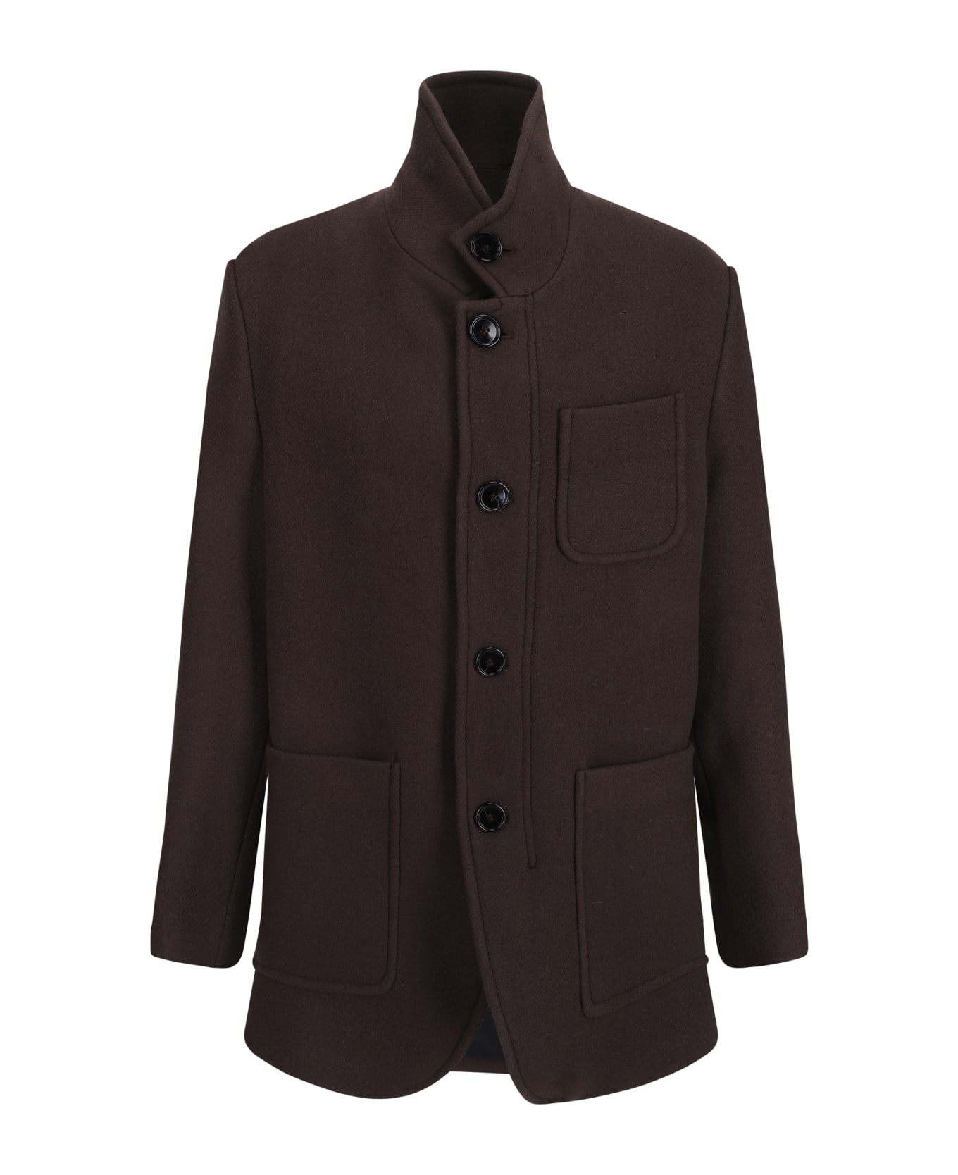 Virgin wool coat by ami paris, high collar, front button closure, three front patch pockets, back slit, knee length, monochrome pattern, over fit. Composition: 100% % Fleece Wool