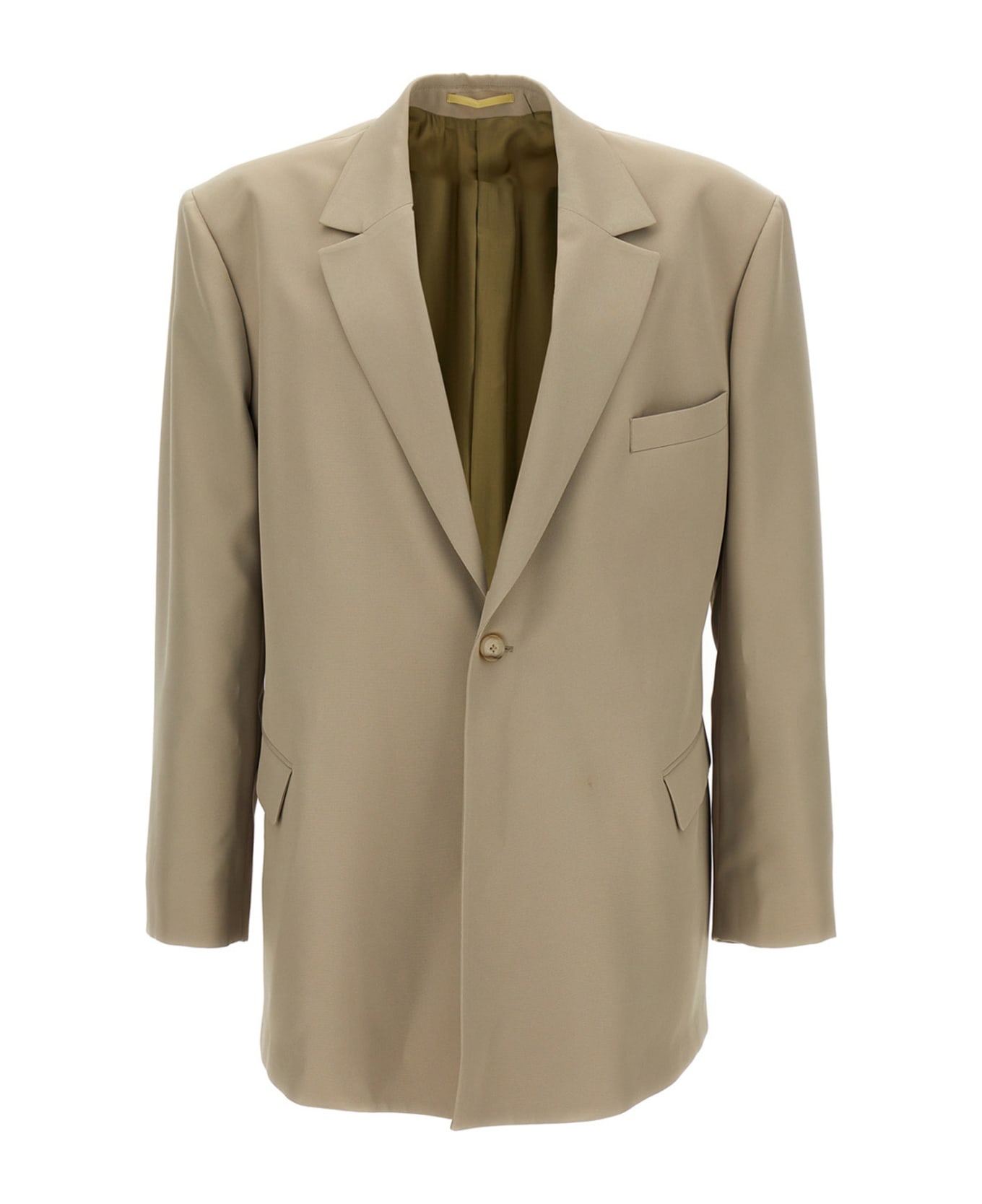 Hanging Tailored' single breast twill blazer jacket with button closure, pockets, long sleeves and structured shoulders. : This product is made in recycled polyester. A product made in a recycled fabric, any imperfections are to be considered characteristics of differentiation.