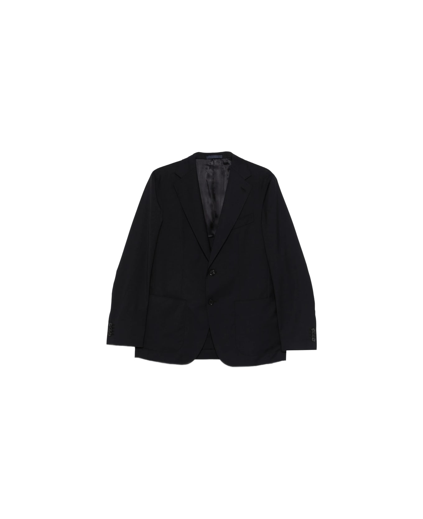 blue notched lapel two-button fastening front flap pockets long sleeves buttoned cuffs