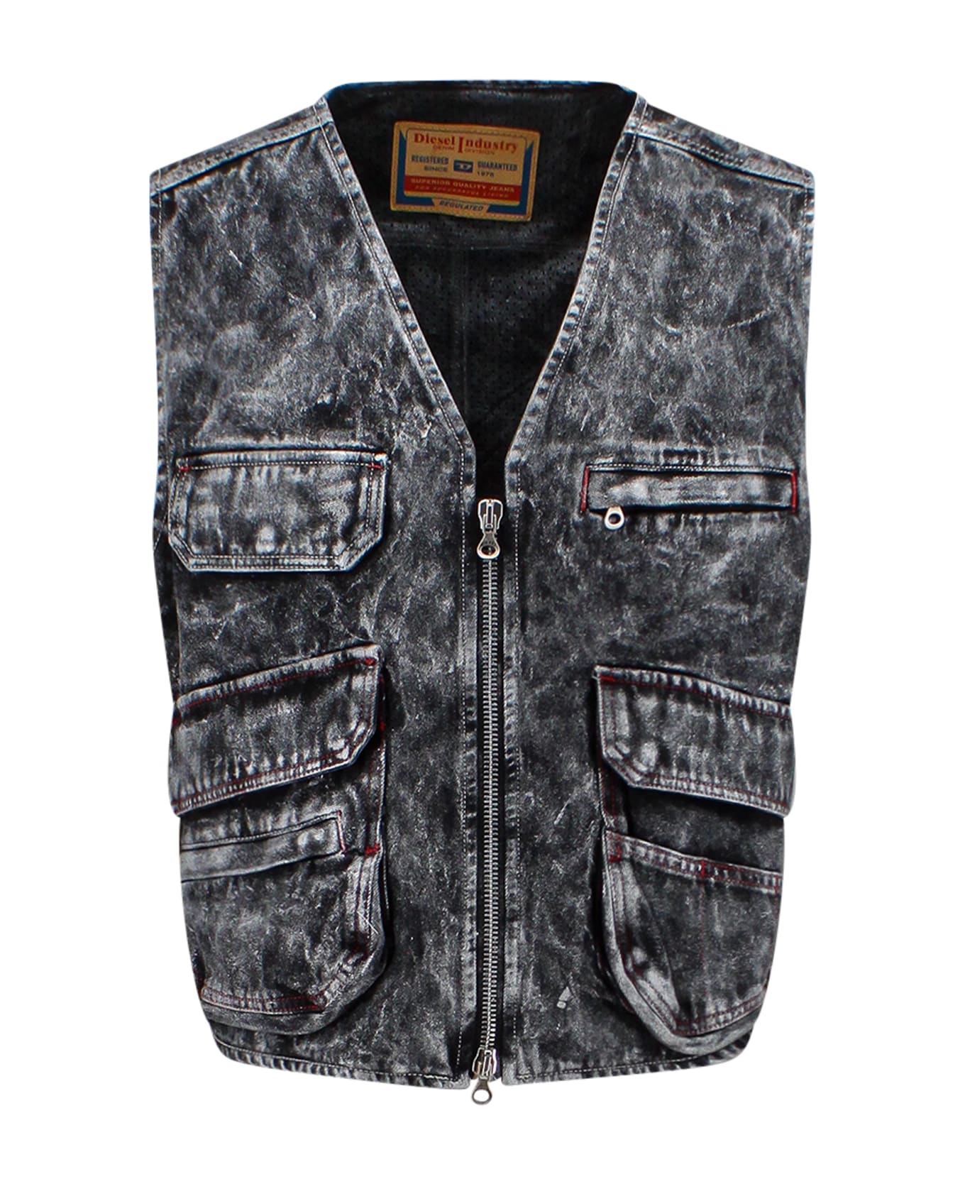 Sleeveless denim vest - Closure With Zip And Double Slder - V-neckline - Front Pockets With Zip And Flap - Perforated Lining - 100% Cotton