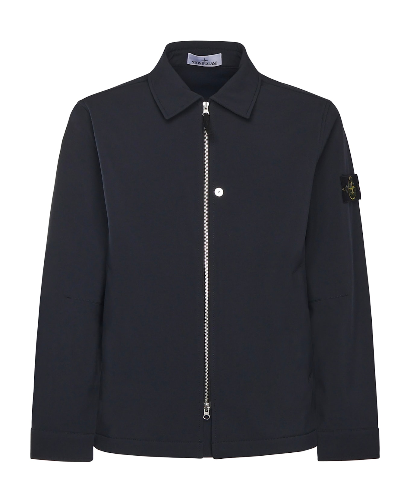 - Made of technical fabric - Two-way zip closure - Long sleeves - Slanted welt pockets - Badge on the left sleeve - Snap-button cuffs - Size shown in the photo is M - Color: Navy Blue