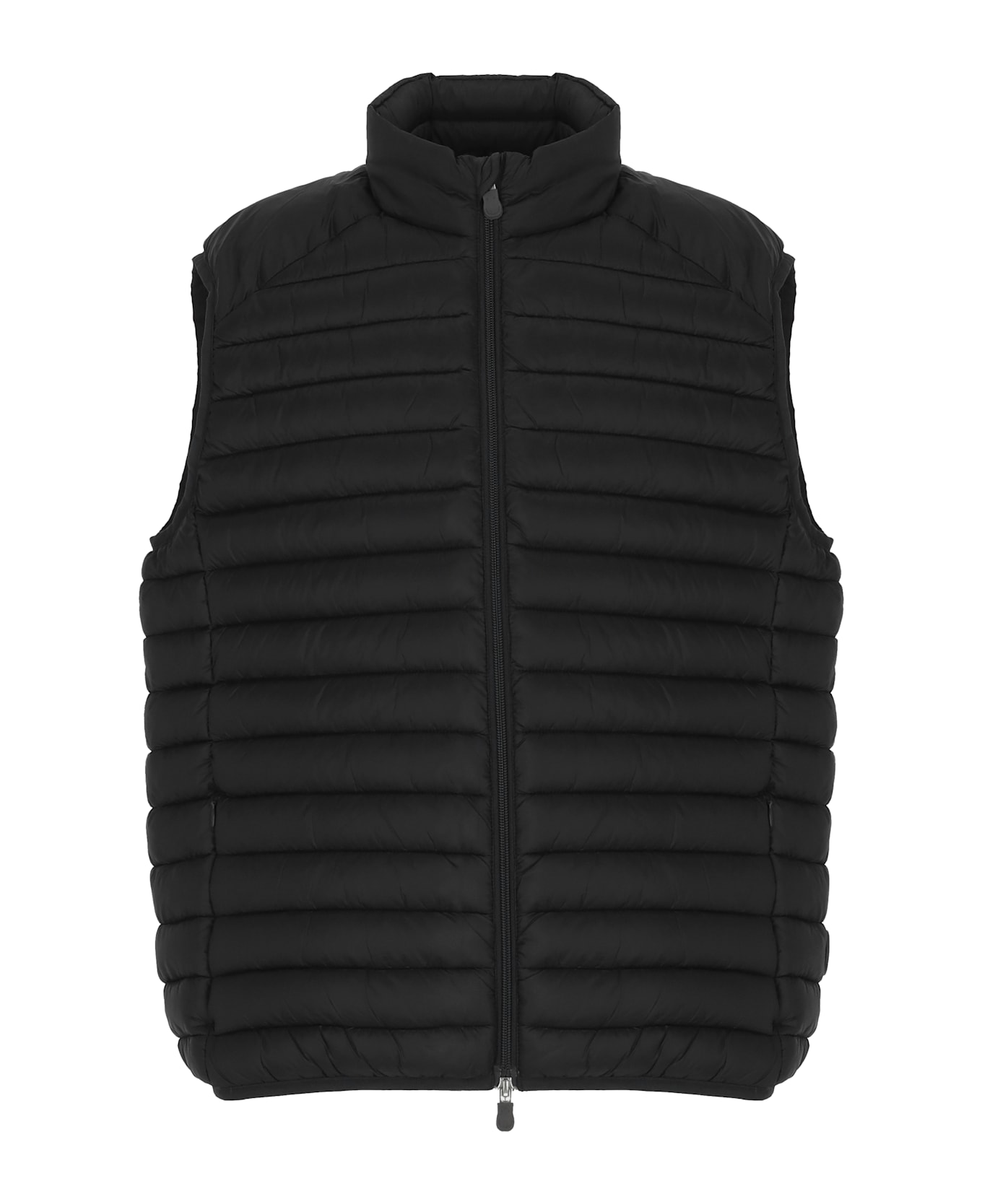 - Dark blue Save The Duck tech fabric padded vest jacket for man - High neck - Sleeveless - Rubber logoed patch at hem - Two front zip fastening - Front zip fastening