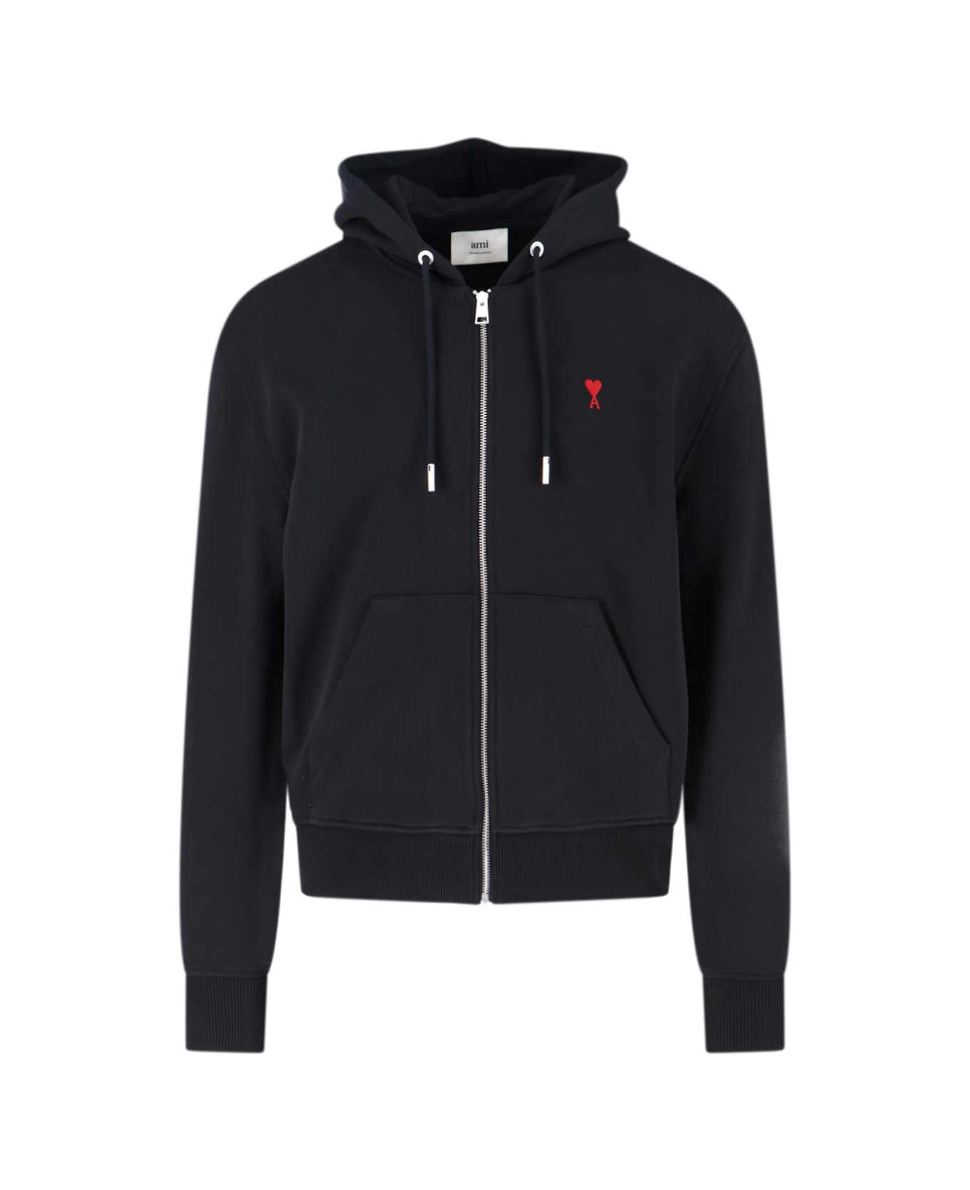 - Hooded sweatshirt logo Ami in black cotton