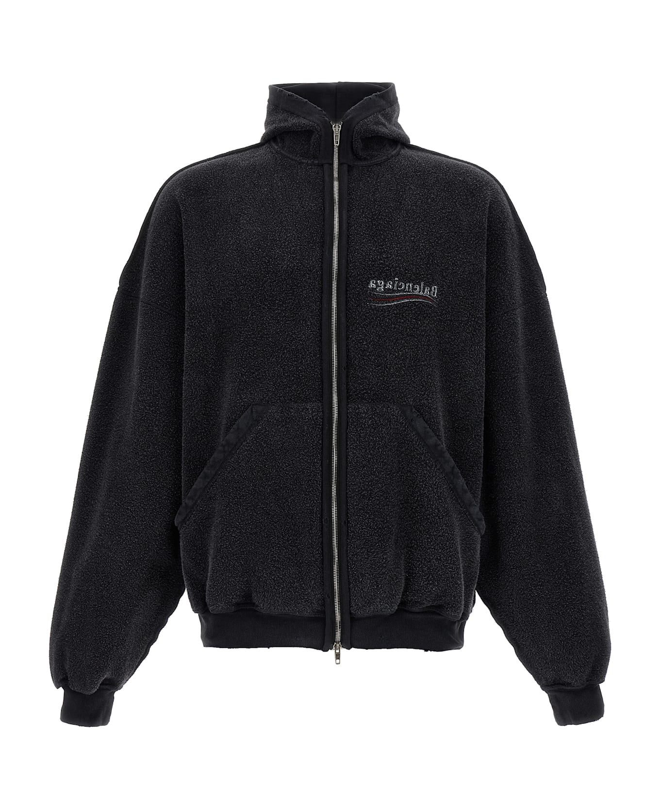 'Inside-Out' faded-effect dry fleece hoodie with rips, 'Political Campaign' reverse embroidery on the front and back, exposed stitching, front zip closure, pockets, long sleeves with cuffs and dropped shoulder. Composition: 100% cotton