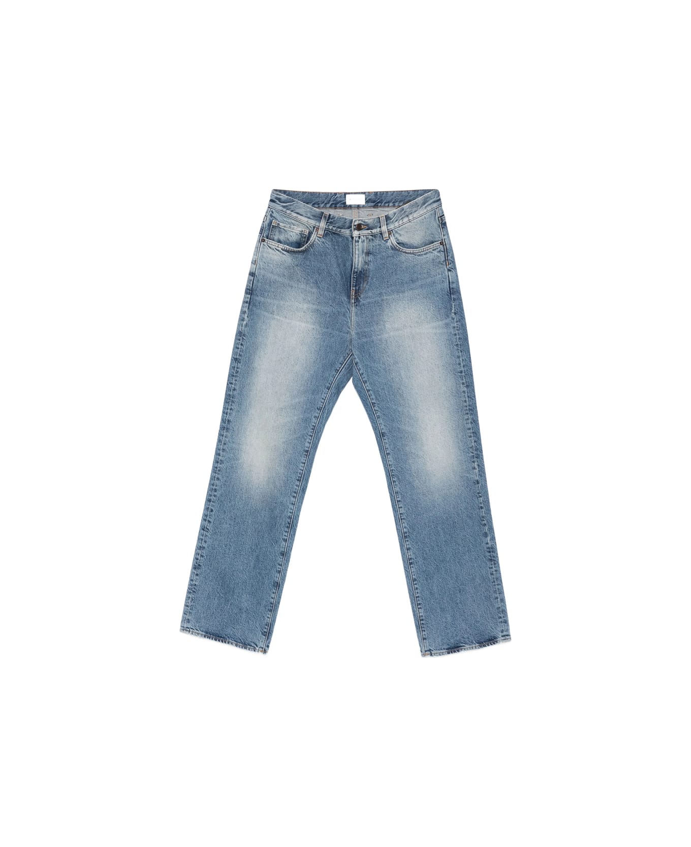 blue five pockets belt loops button fastening topstitching