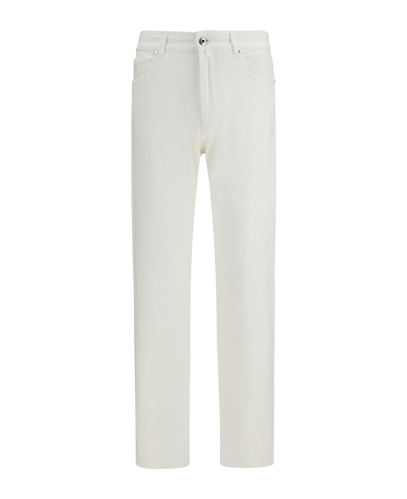The milton-15 jeans by moorer, with a straight five-pocket design, offer a classic and versatile look. the belt loops at the waist allow you to easily adapt them to your style, while the zip and button closure ensures practicality and comfort. made from high-quality materials, these jeans are perfect for everyday wear and can be easily paired with both a casual shirt and a t-shirt. an essential item for any modern wardrobe.