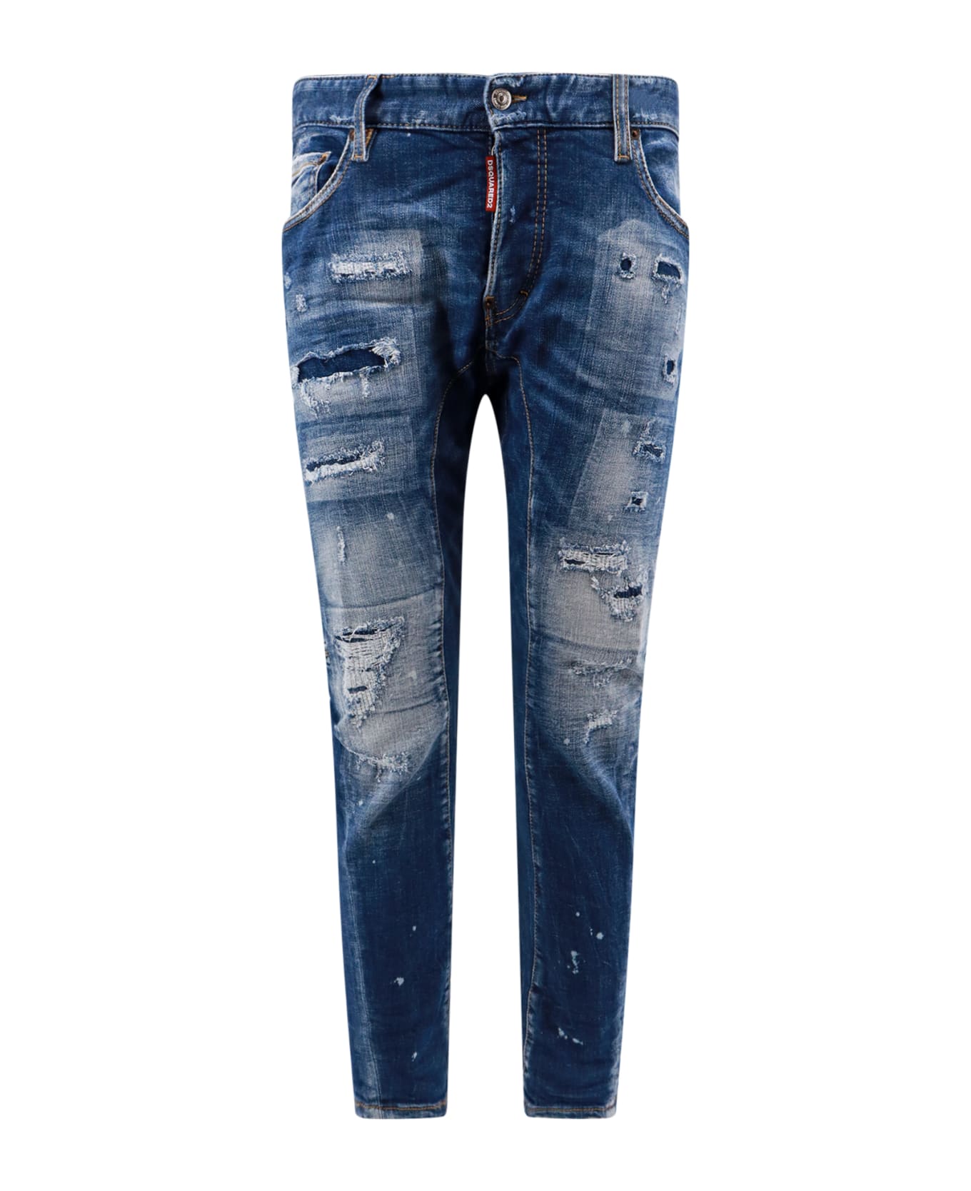 Jeans with Destroyed effect and multicolor Logo tag