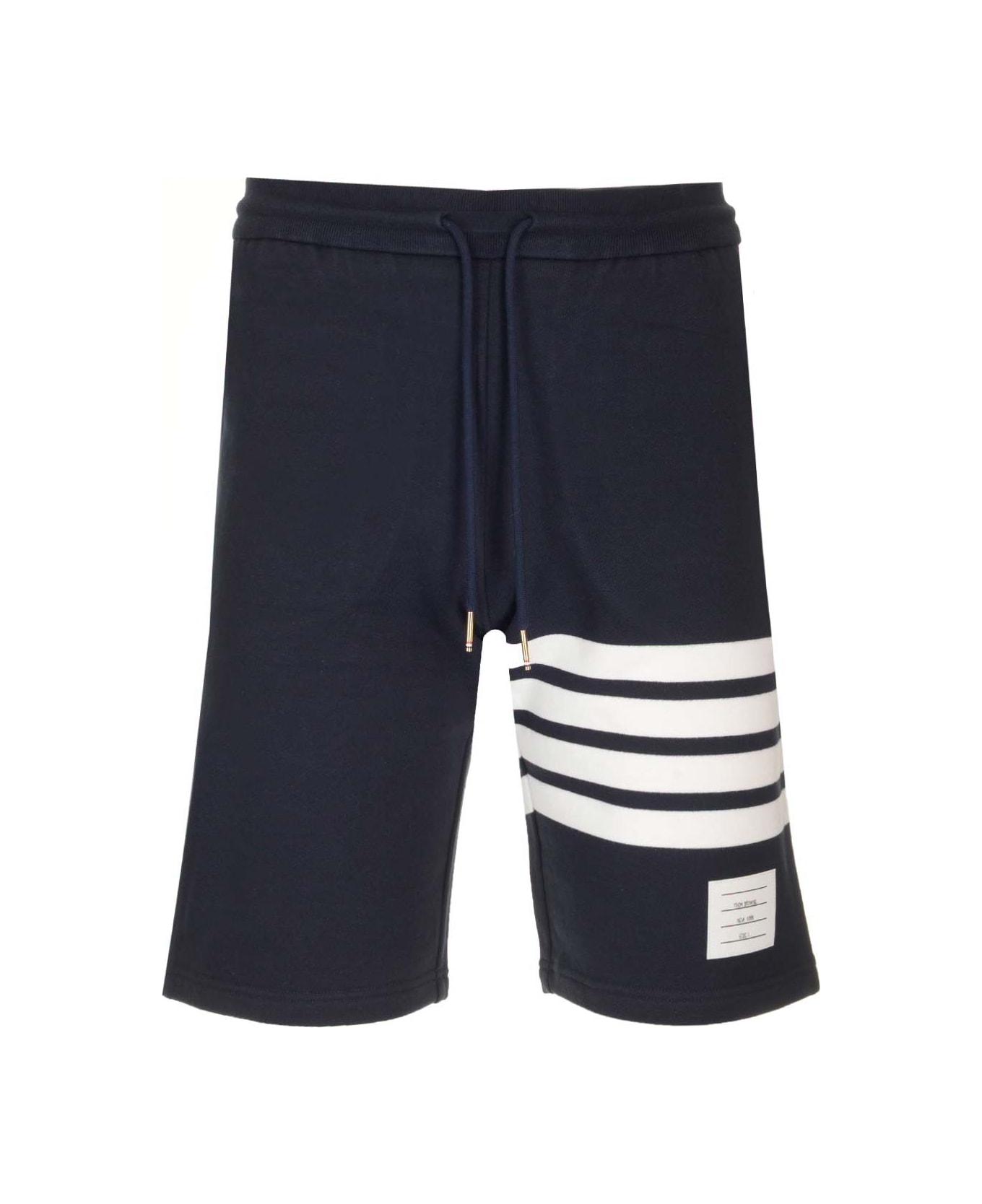 "Classic Loopback" shorts in blue cotton from Thome Browne, with 4-bar detail on the thigh, drawstring waist with tips, side slip pockets and name tag applied above the hem. Composition: