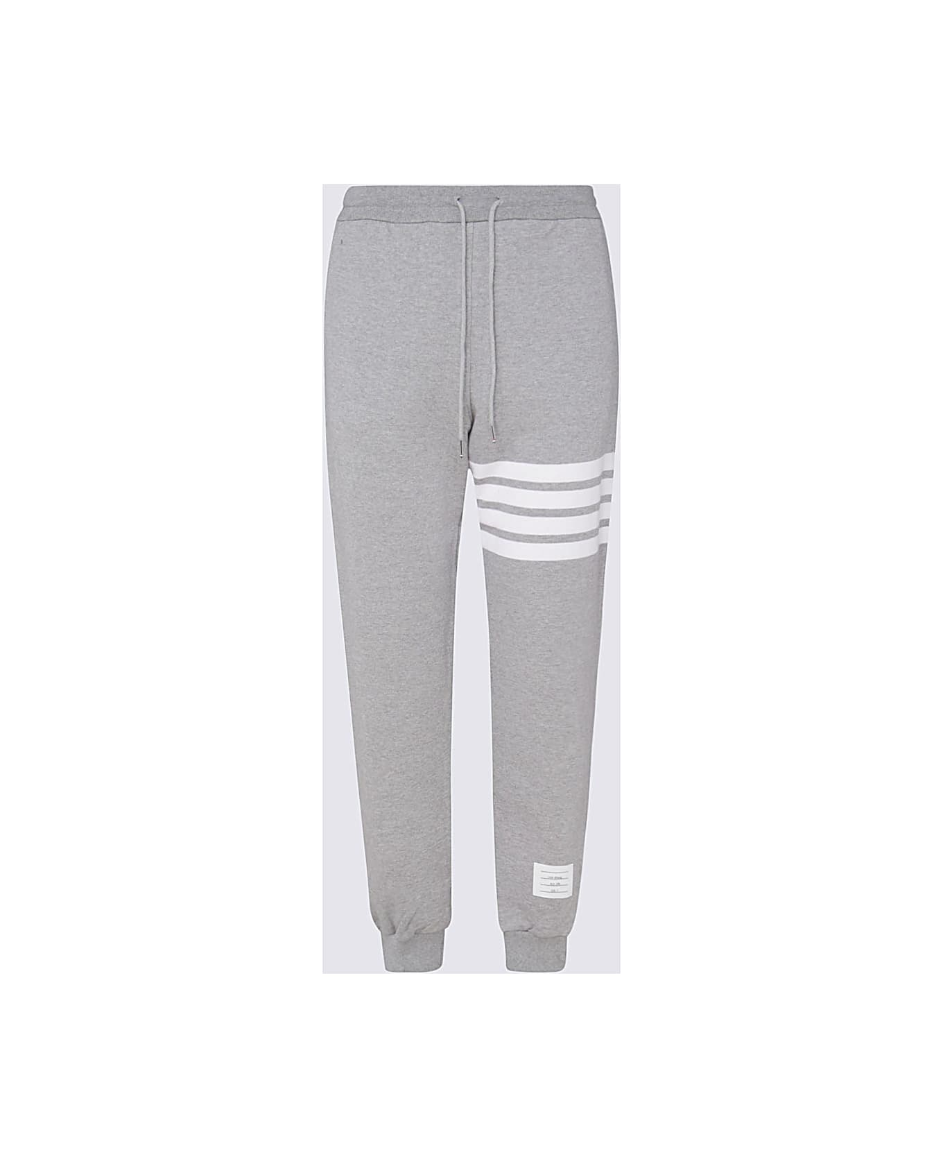 Light grey cotton pants from Thom Browne featuring elasticizated waist with drawstrings, ribbed cuffs, lateral stripes and regular vestibility. Composition: _, 100% Cotton
