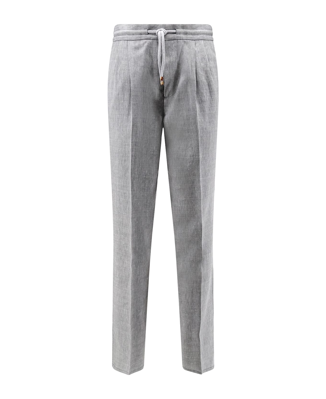 Zip and metal hook closure Elastic waistband and adjustable drawstring Double pleat detail Front slant pockets Back welt pockets Made in Italy 60% linen, 40% virgin wool SKU: MZ408E1710C032
