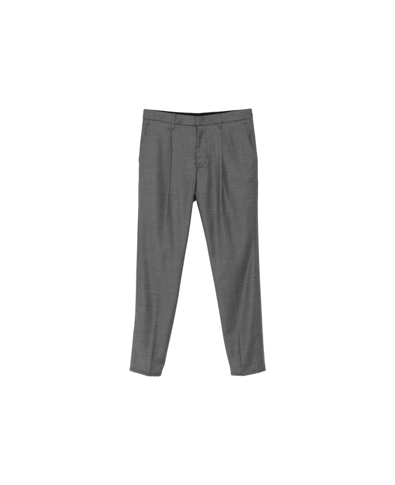 grey belt loops front pleats side seam pockets rear welt pockets concealed front fastening
