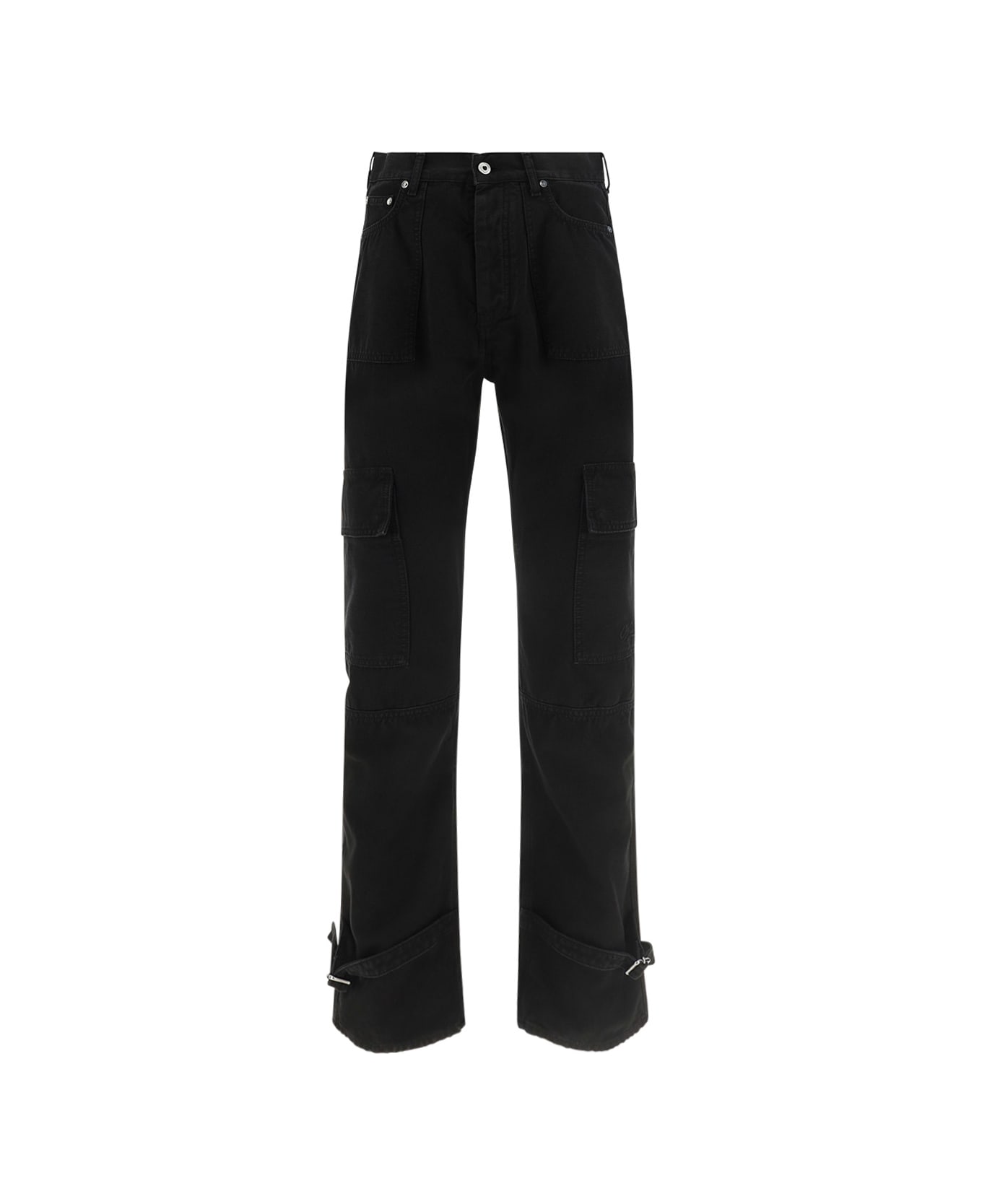Cotton wave pants by off-white, front button fastening, straight five-pocket design, belt loops on waistband, leather patch with iconic brand signature pressure print on back. Composition: 100% % Cotton