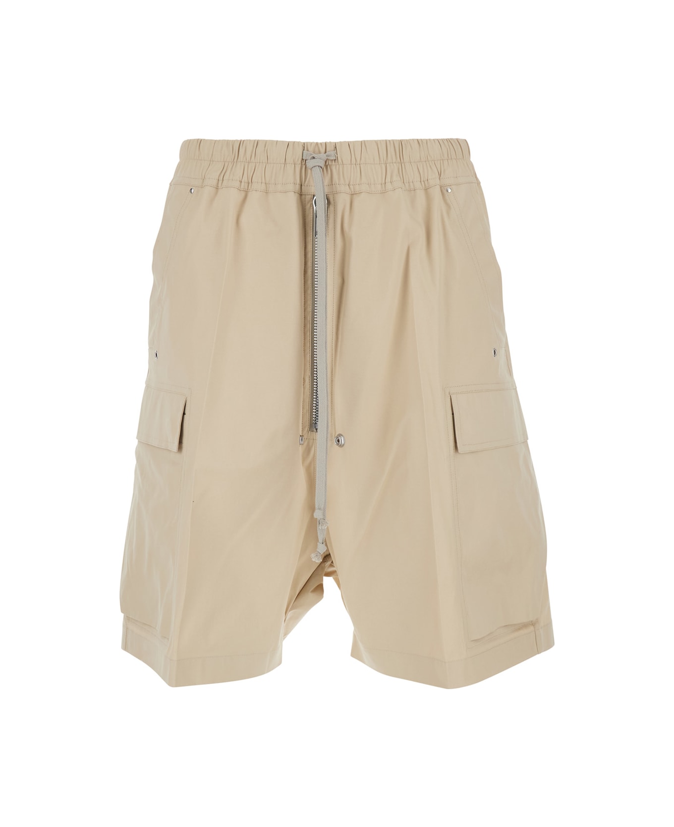 Beige Shorts With Elastic Drawstring And Welt Pockets In Cotton Stretch Man
