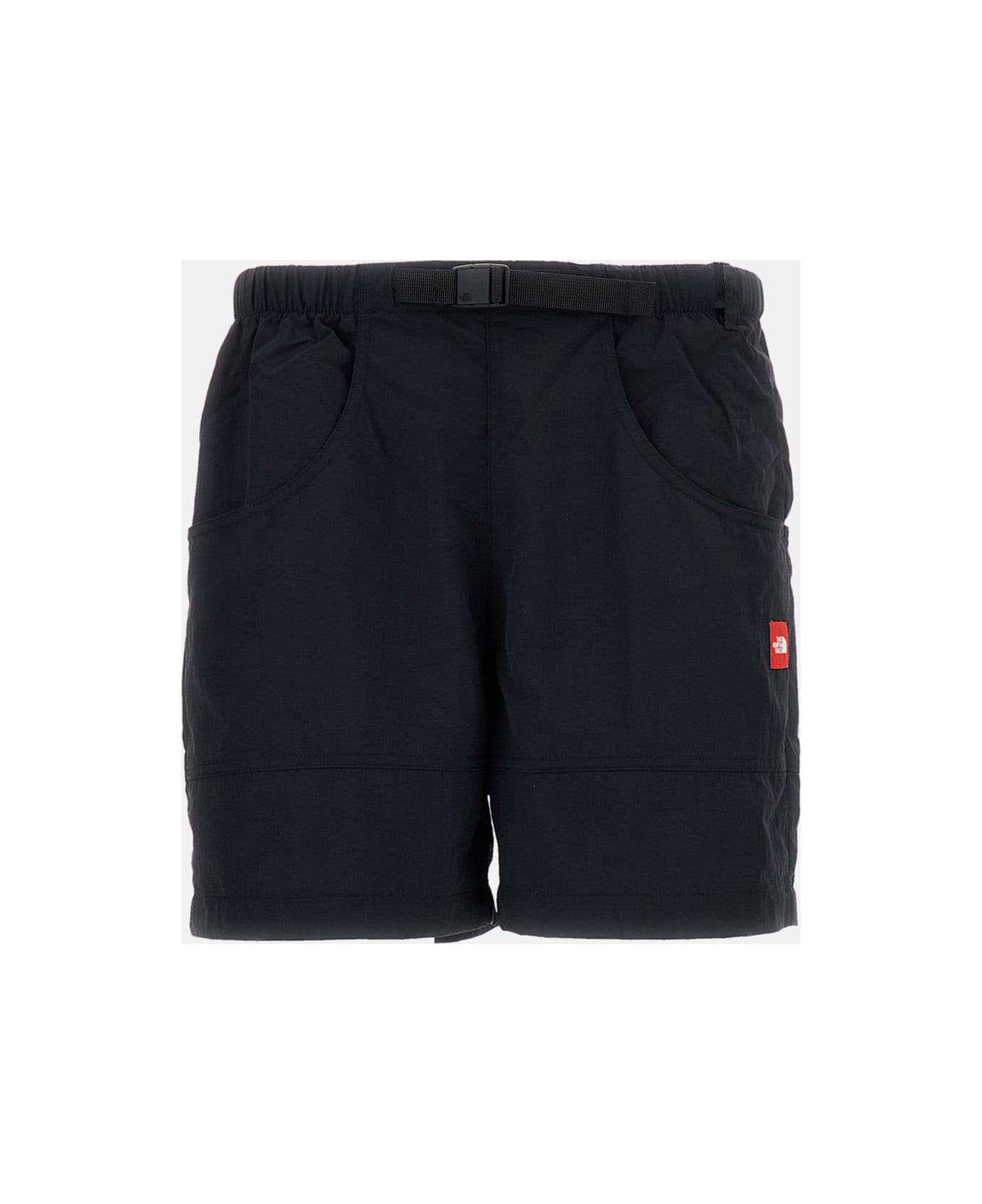 Shorts in nylon Wide leg Logo patch on the front Elasticated waist with a quick-release buckle strap Side pockets Back pockets Color: black