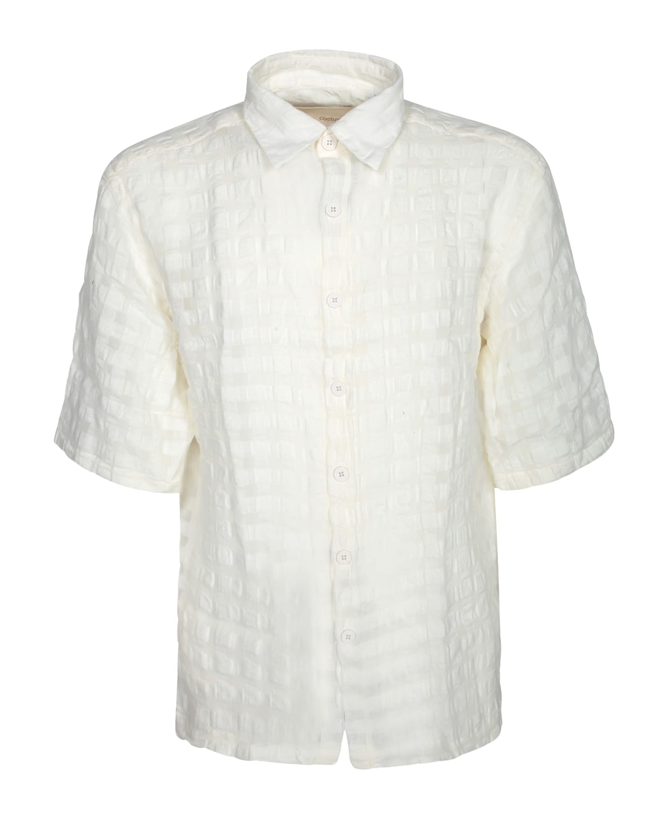 This white linen shirt from COSTUMEIN is designed for maximum comfort in warm weather, featuring a refined design with a light square texture and tailored finishes.