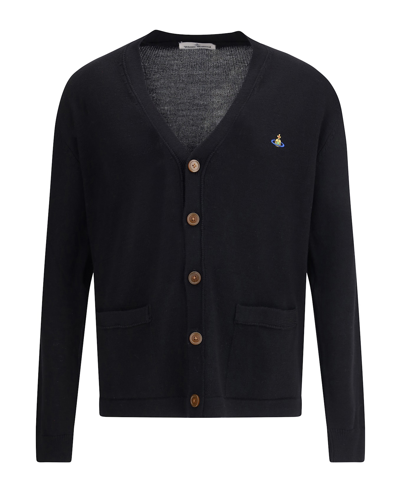 Vivienne westwood's alex cardigan is a versatile garment with a refined character. featuring a v-neckline and a front button closure, it has two welt pockets on the front and an embroidered logo, the house's signature symbol, on the chest. Composition: 100% % Fleece Wool