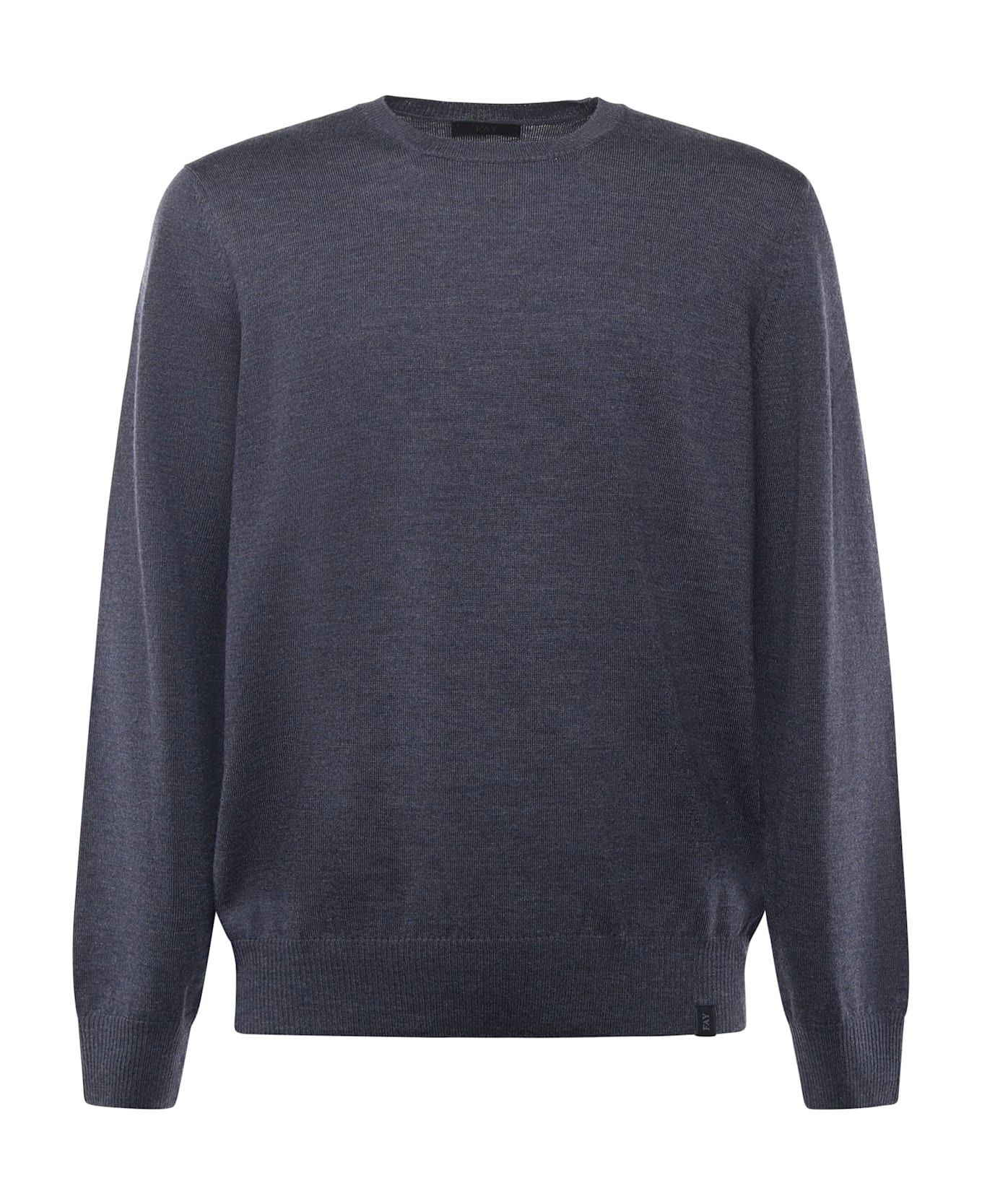 - Made of a smooth wool knit - Crew neck - Long sleeves - Logo patch at the bottom - Made in Italy - Size shown in the photo is a 46 -Color: Air Force Blue