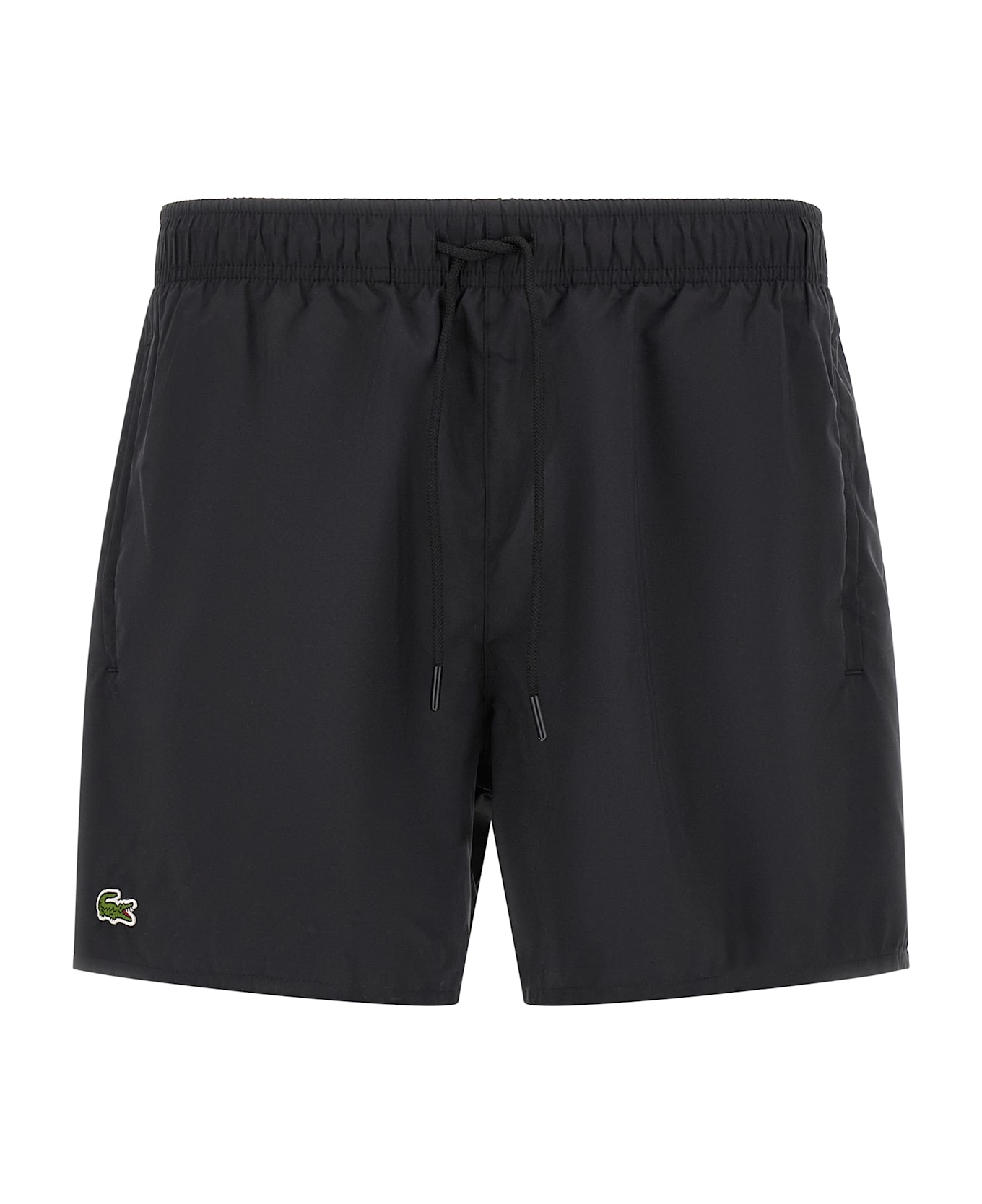 Swimsuit model shorts, elastane waist and adjustable drawstring, side pockets with contrasting inserts, front logo patch, inner mesh briefs.