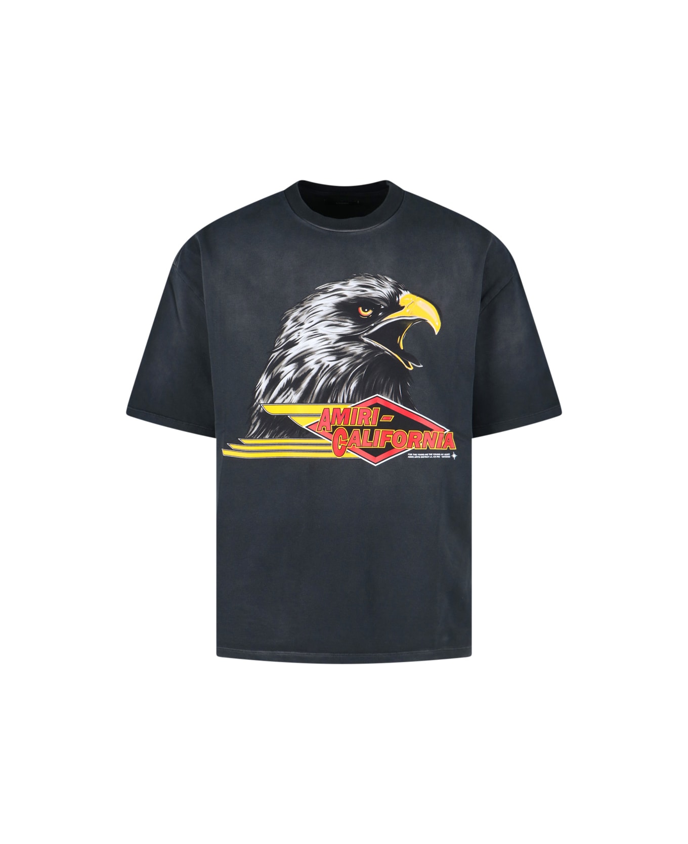 Amiri 'Eagle' black cotton crew neck t-shirt with short sleeves, maxi multicolor logo print on the chest, maxi multicolor logo print on the back, straight hem.