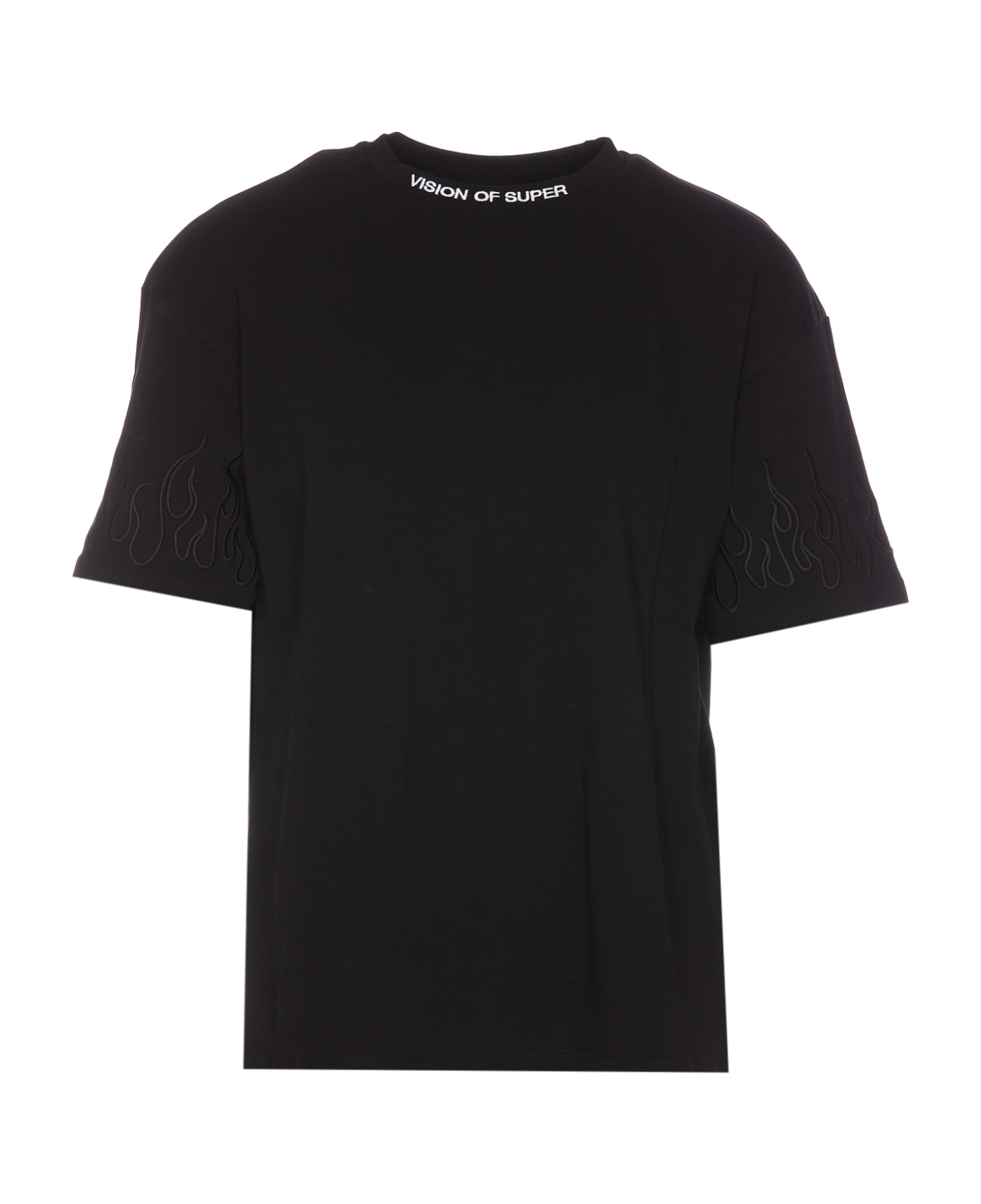 Vision of Super black Flames t-shirt, round neck, frontal logo, tone on tone loogo on the sleeves
