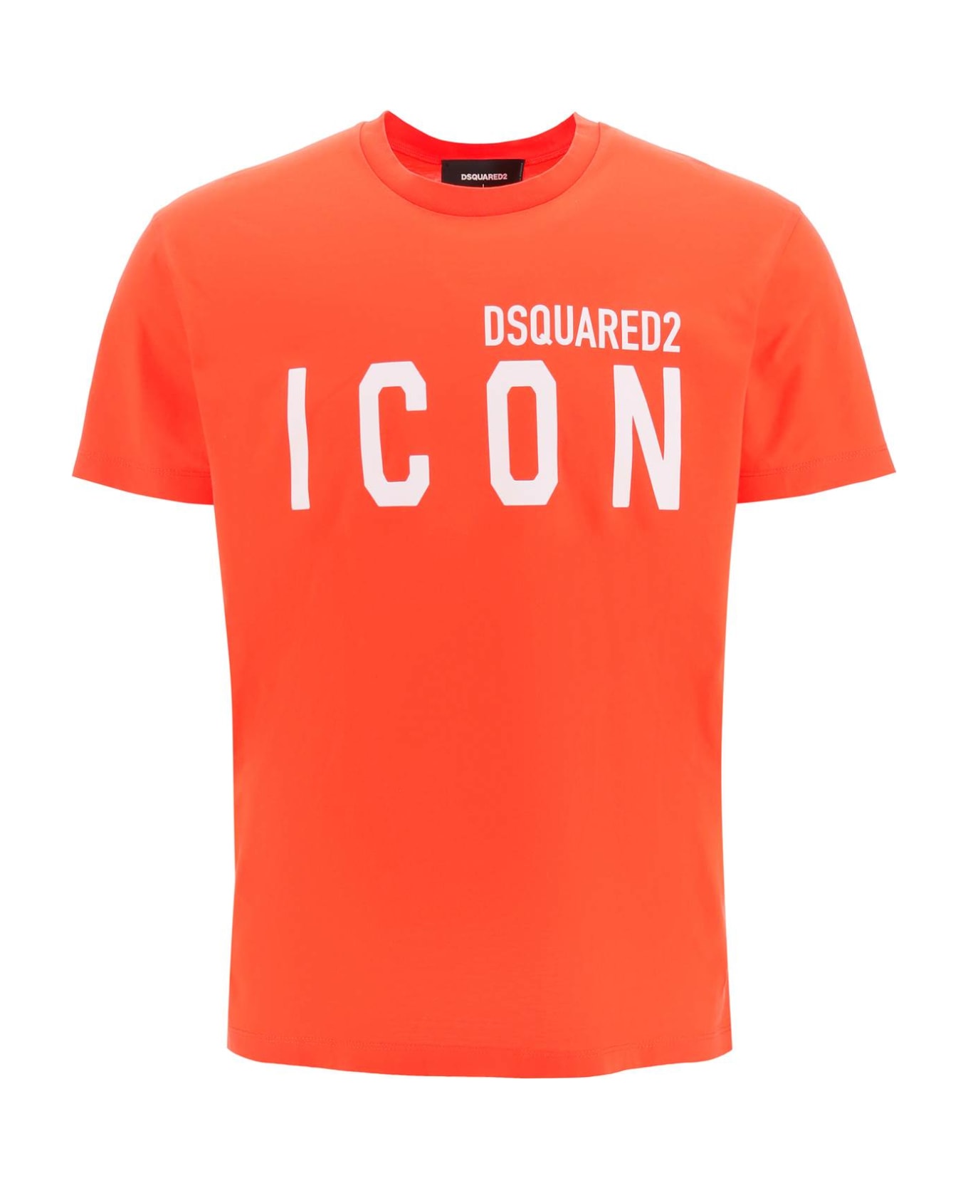 Dsquared2 regular short-sleeve t-shirt in cotton jersey, with contrasting Icon logo print at front. Ribbed crewneck. The model is 187 cm tall and wears a size L.