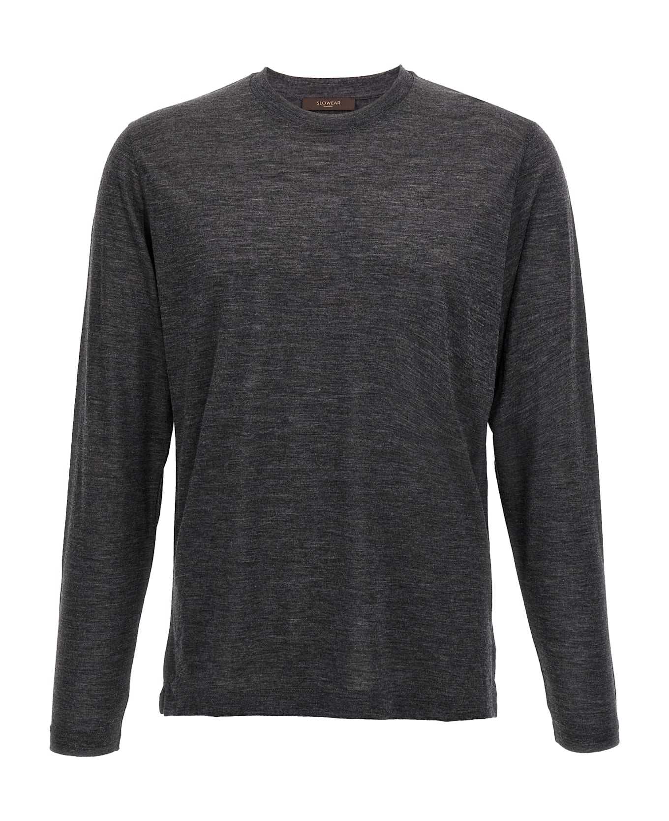 Light virgin wool t-shirt, crew neck, long sleeves, side splits.