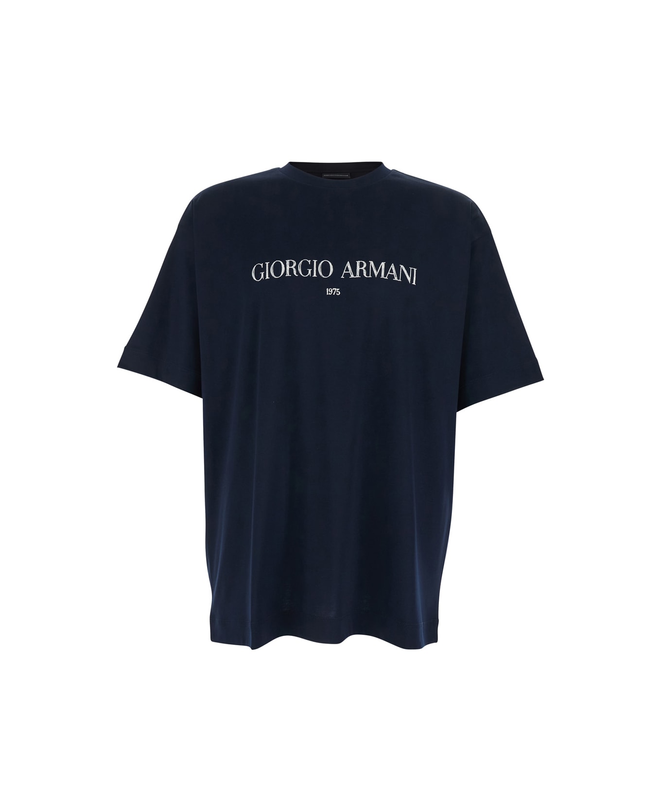 T-shirt Blue Crewneck Short sleeves Logo lettering on the front Straight hem Cotton Regular fit