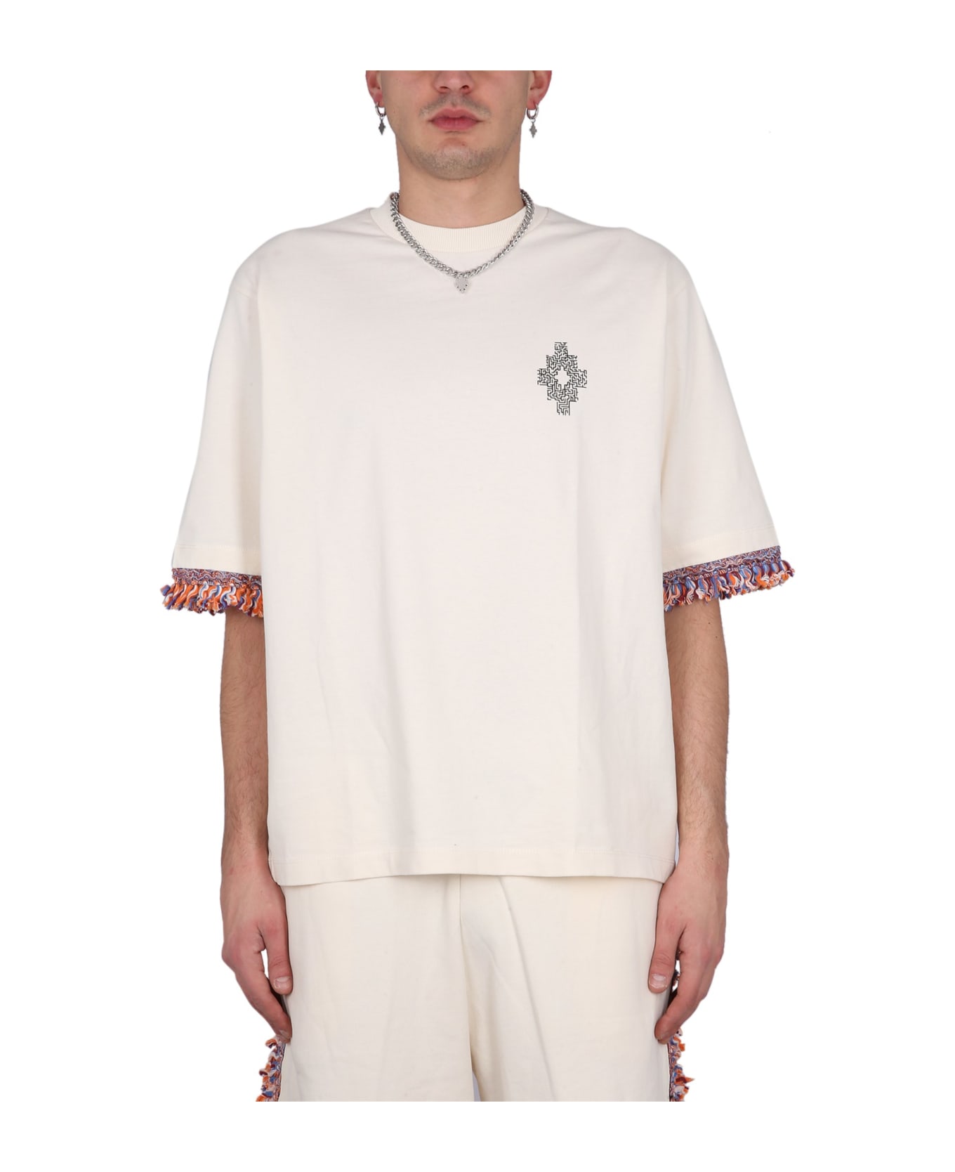 - Crowling- Logo Print- Fringed Edges- 100% Cotton- The Model Is 185 Cm Tall And Wears Size L