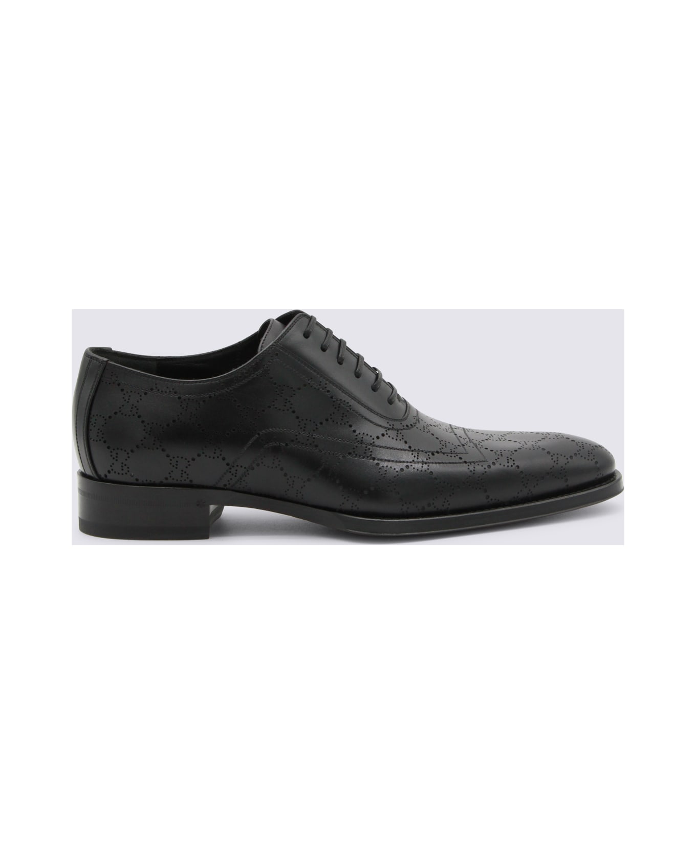 Black leather lace up shoes from Gucci featuring embossed all over GG motif, classic lace up line, square toe and branded insole. Composition: _, 100% Le