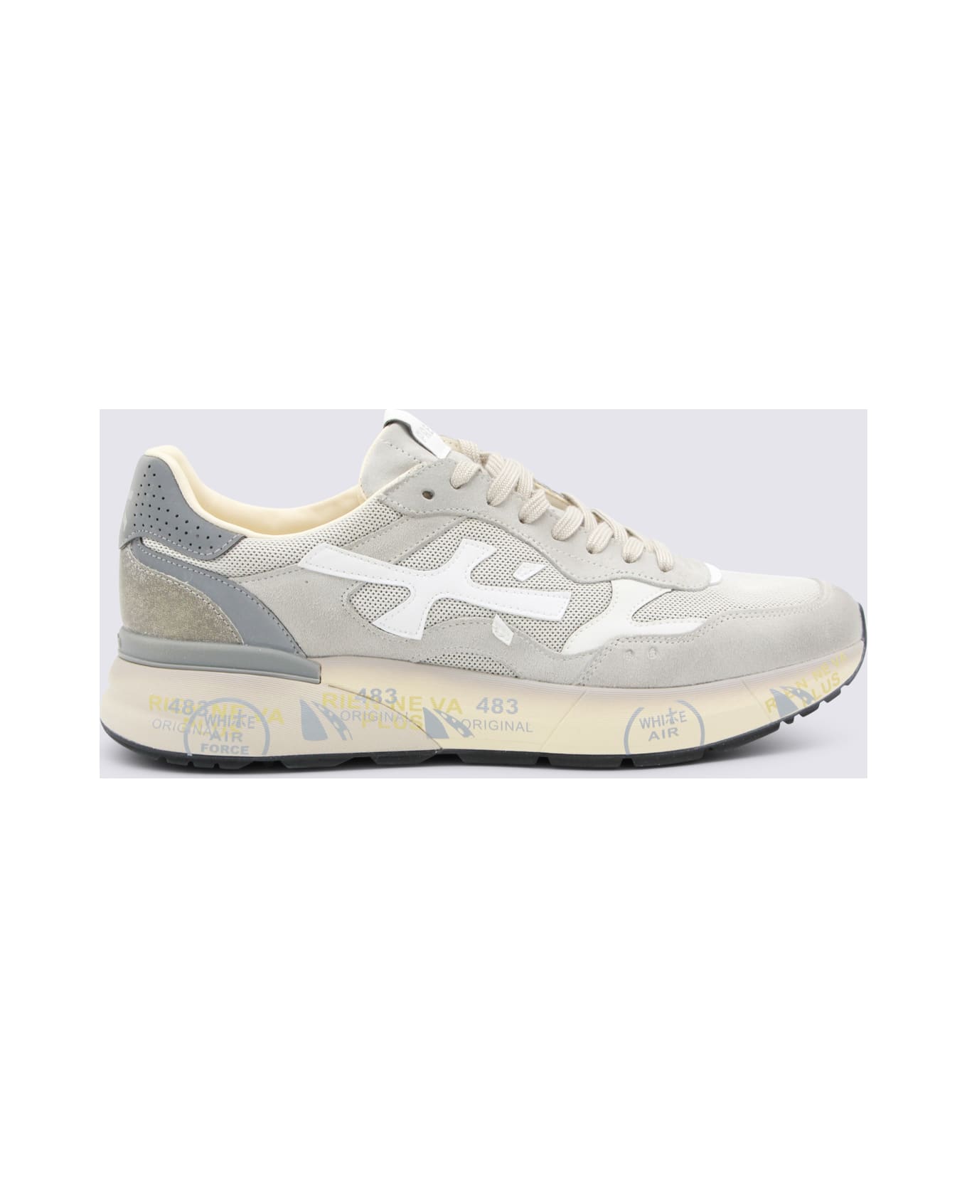 Grey leather sneakers from Premiata featuring round toe, laces fastening, side logo, branded tongue and rubber sole.