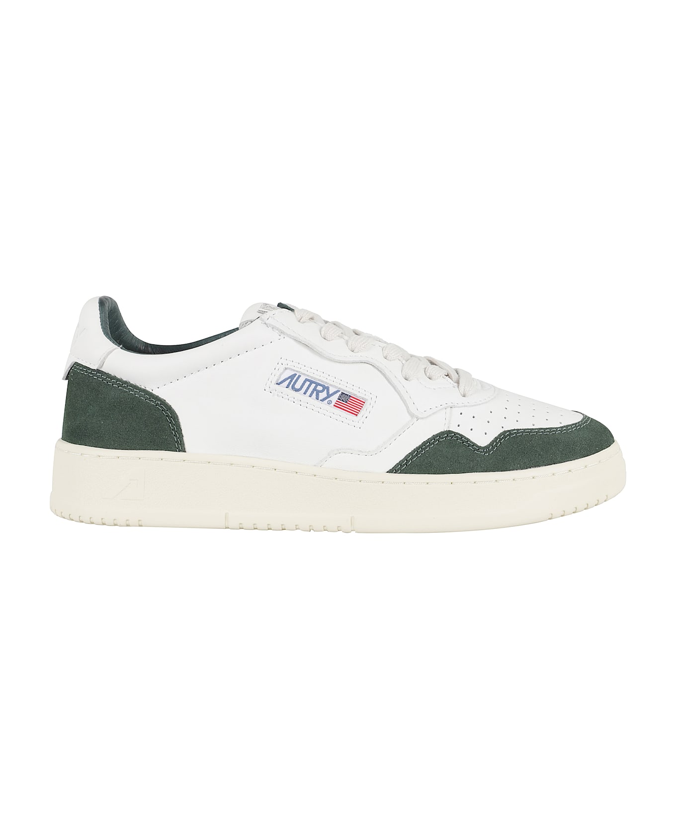 Medalist Low Men sneakers - Autry - white color - leather upper - bottle-colored suede inserts - perforated round toe - cotton laces - rubber sole