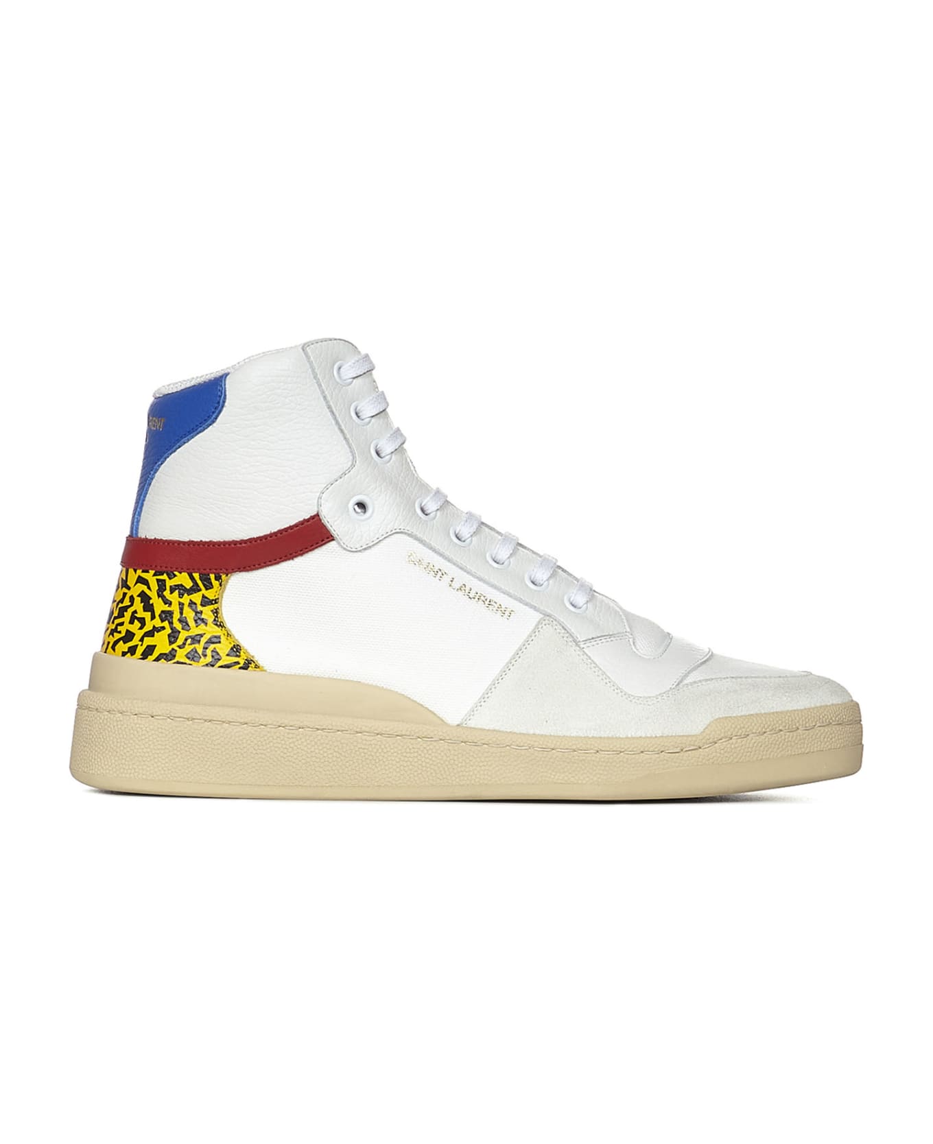 SL24 MID-TOP sneakers in organic cotton canvas and perforated and embossed leather