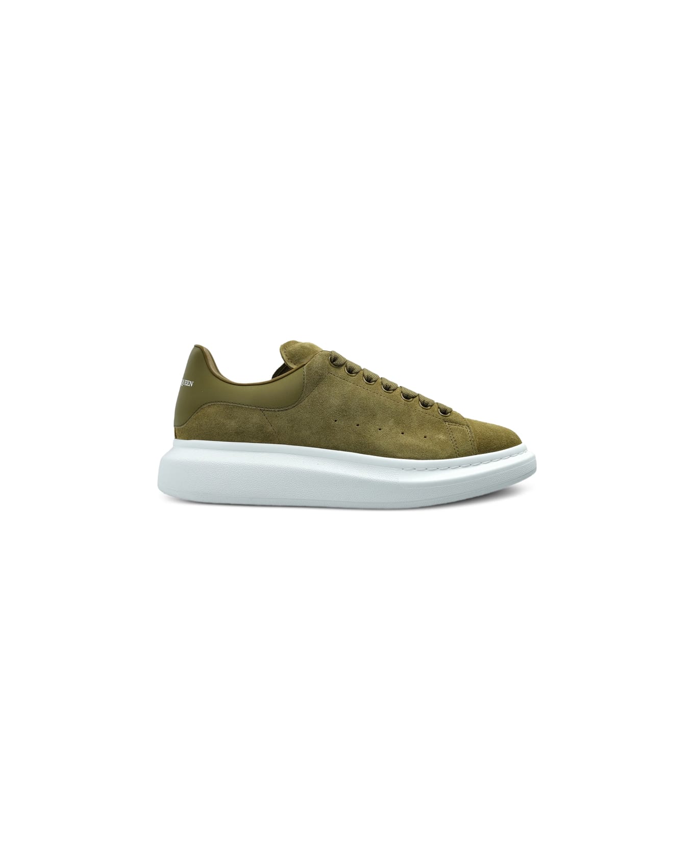 green platform sole lace-up fastening round toe logo-print on the heel rubber sole To lessen the environmental impact and to reduce cotton consumption, Alexander McQueen will no longer be providing a dust bag with its sneakers.