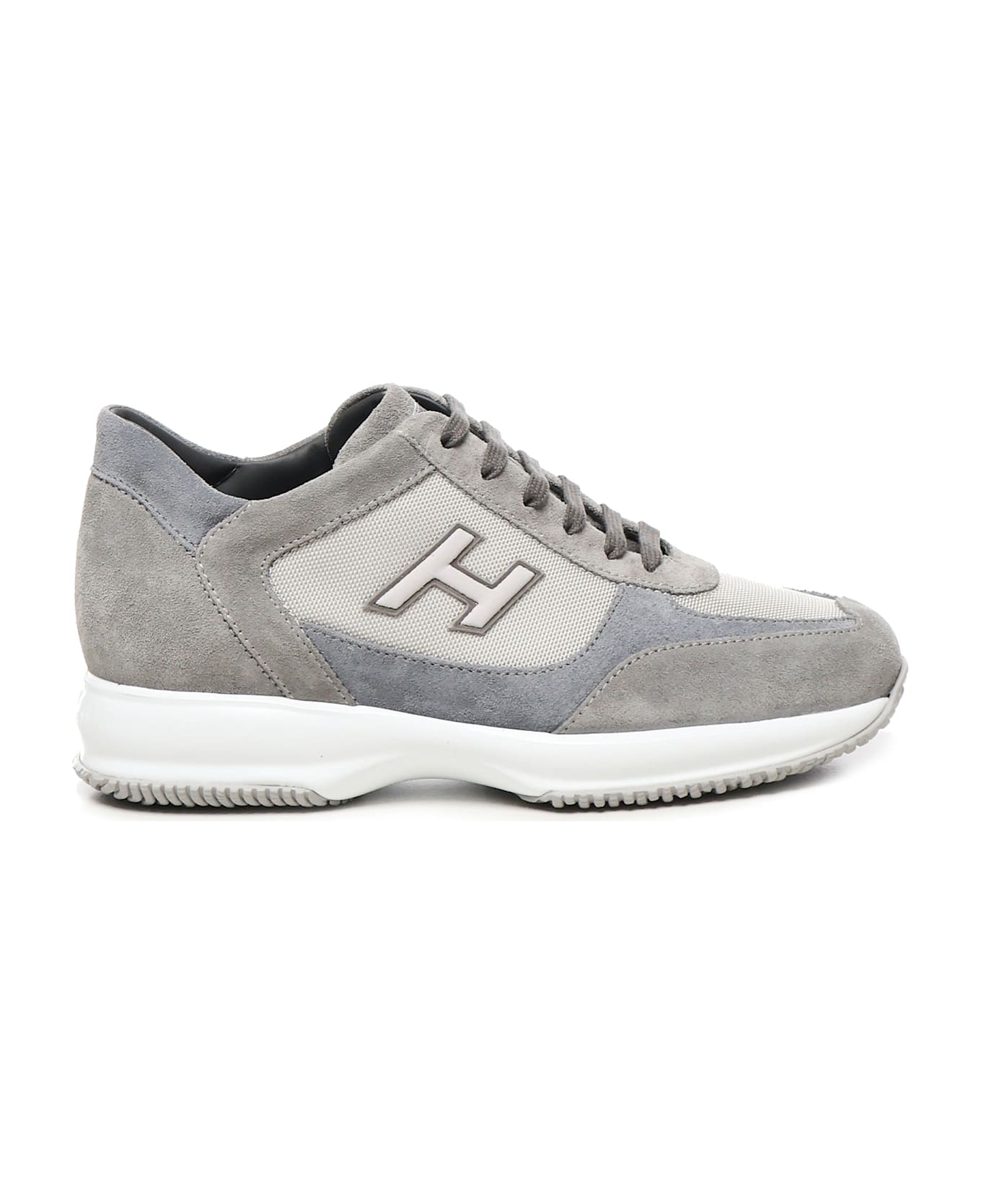 -Suede leather upper -Woven fabric inserts -Flocked side H -Exposed stitching -Rubber sole -Made in Italy -Colour: Grey