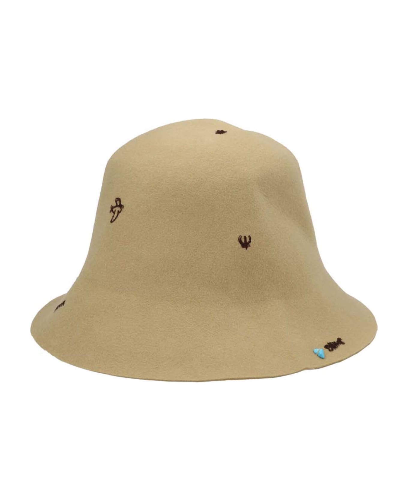 Superduper x Jorge Jorubini 'Freya' bucket hat in a soft, round-up wool felt, easy to put in a pocket, pleated drawings of "travel memories", on the hemline of a natural stone. Dame Freya Stark was an explorer in those two British explorers and a travel writer. He wrote more than two dozens of books during his travels in the Middle East and Afghanistan, in addition to different works and comments in autobiographical works. It was one of the first non-Arabs known to travel through the southern Arab desert in modern times. : The hat is made in Florence, Italy with respect and awareness of the quality and manufacturing process.