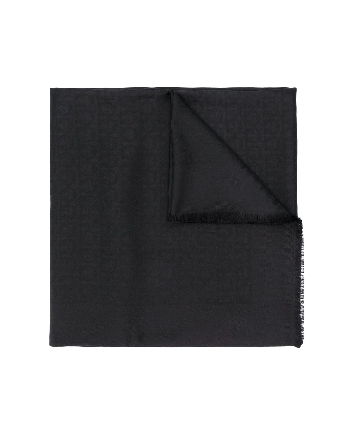 Logos. Logos everywhere. Made from a black silk-wool blend, this jacquard Gancini shawl from Ferragamo will be closely worn around your neck. Never take it off. Featuring fringed edges and a large square shape.