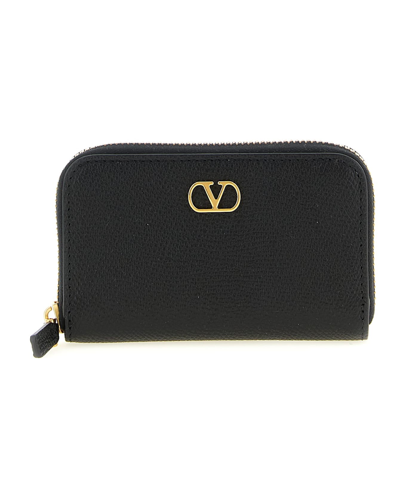 Garnet calf leather card holder, Vlogo Signature metallic antiqued effect on the front, zip closure. Composition: 100% calfskin leather (Bos Taurus)
