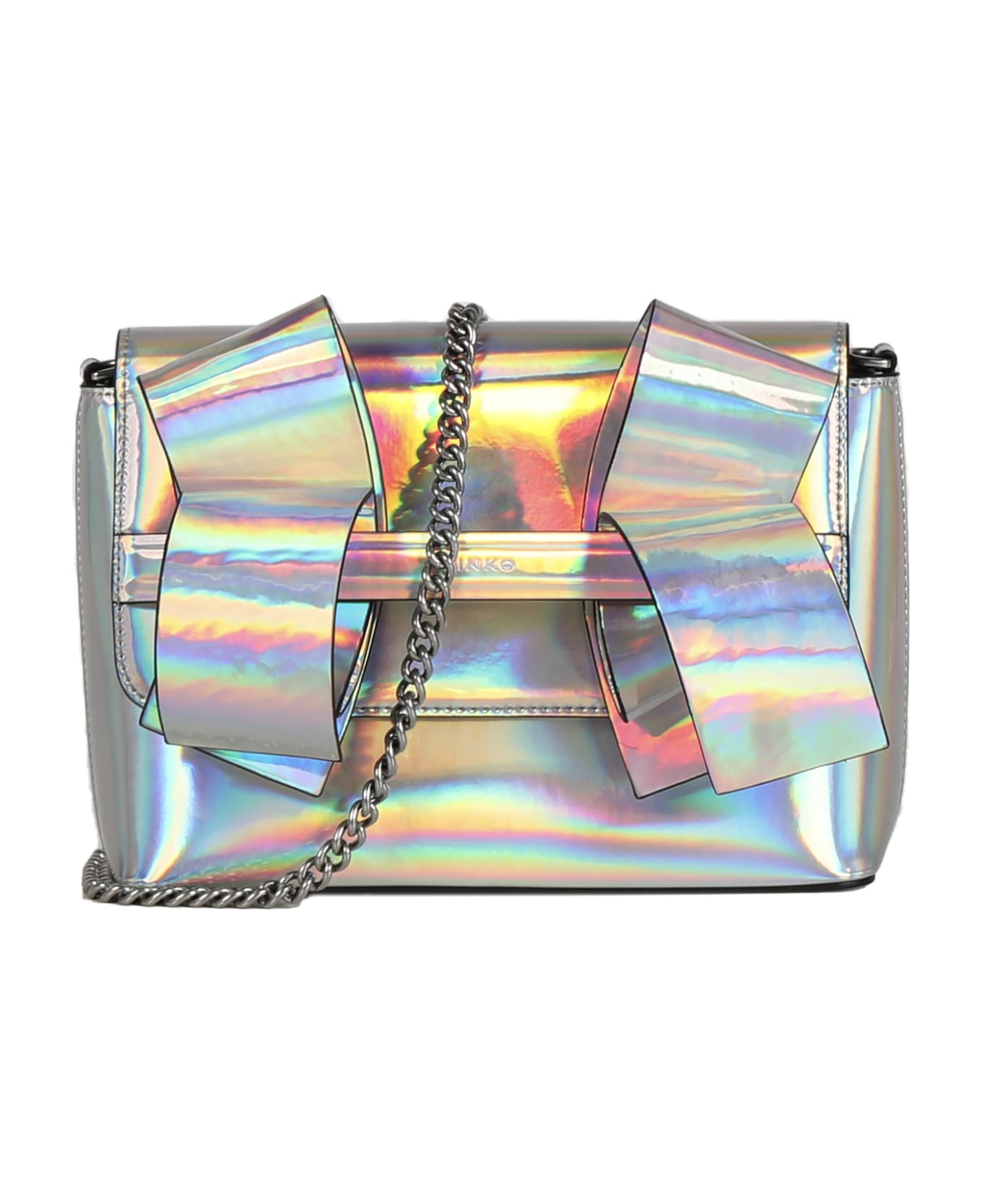 Silver-old silver Aika Shoulder Bag from Pinko -Bag with an iridescent effect -3D details-Chain shoulder strap -Magnetic closure -Internal pocket with zip -Measurements: 21x16x8 cm -Colour: Silver -100% Polyurethane