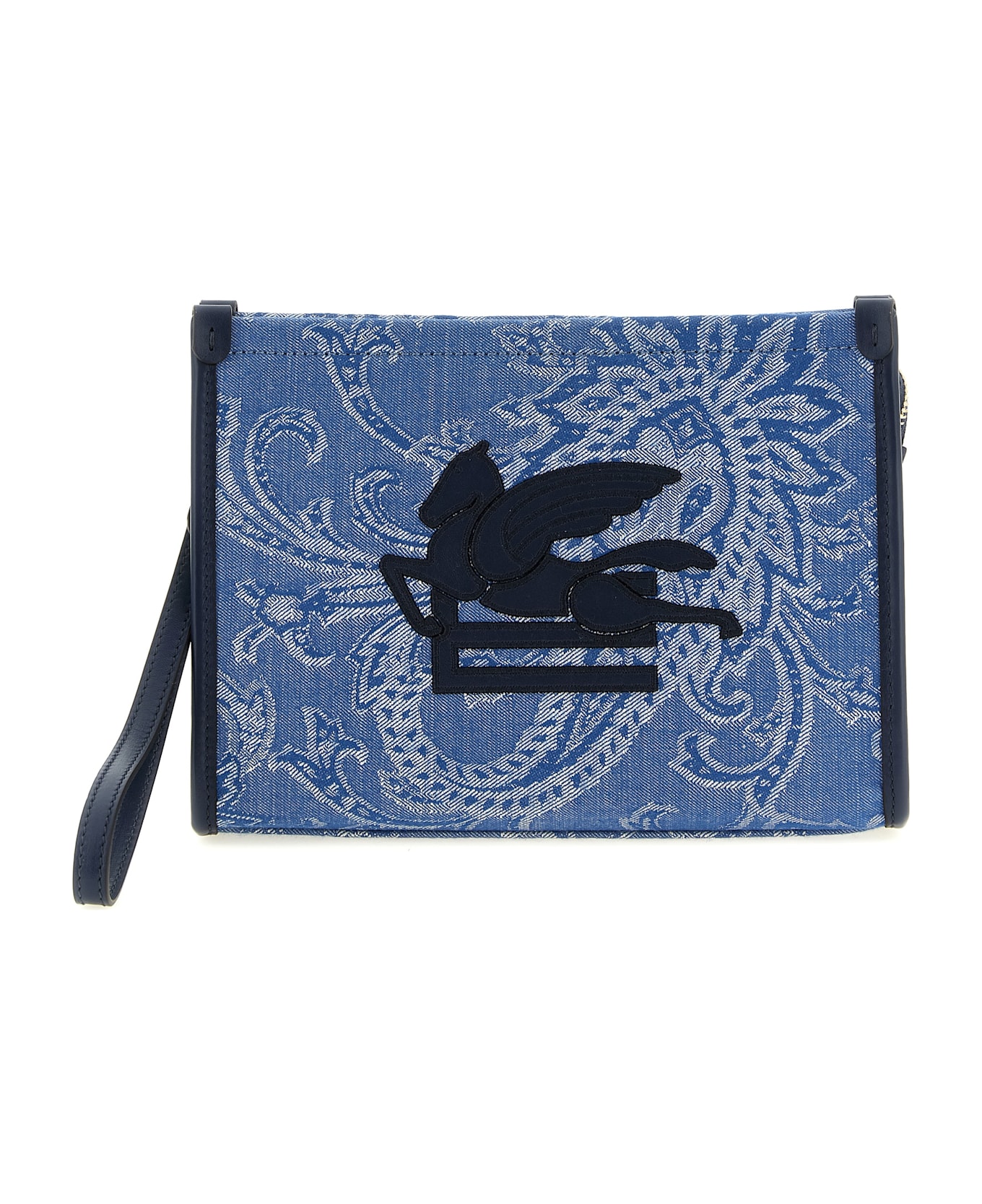 'Paisley' jacquard fabric clutch bag with front logo embroidery, zip closure. Composition: 98% cotton, 2% elastane