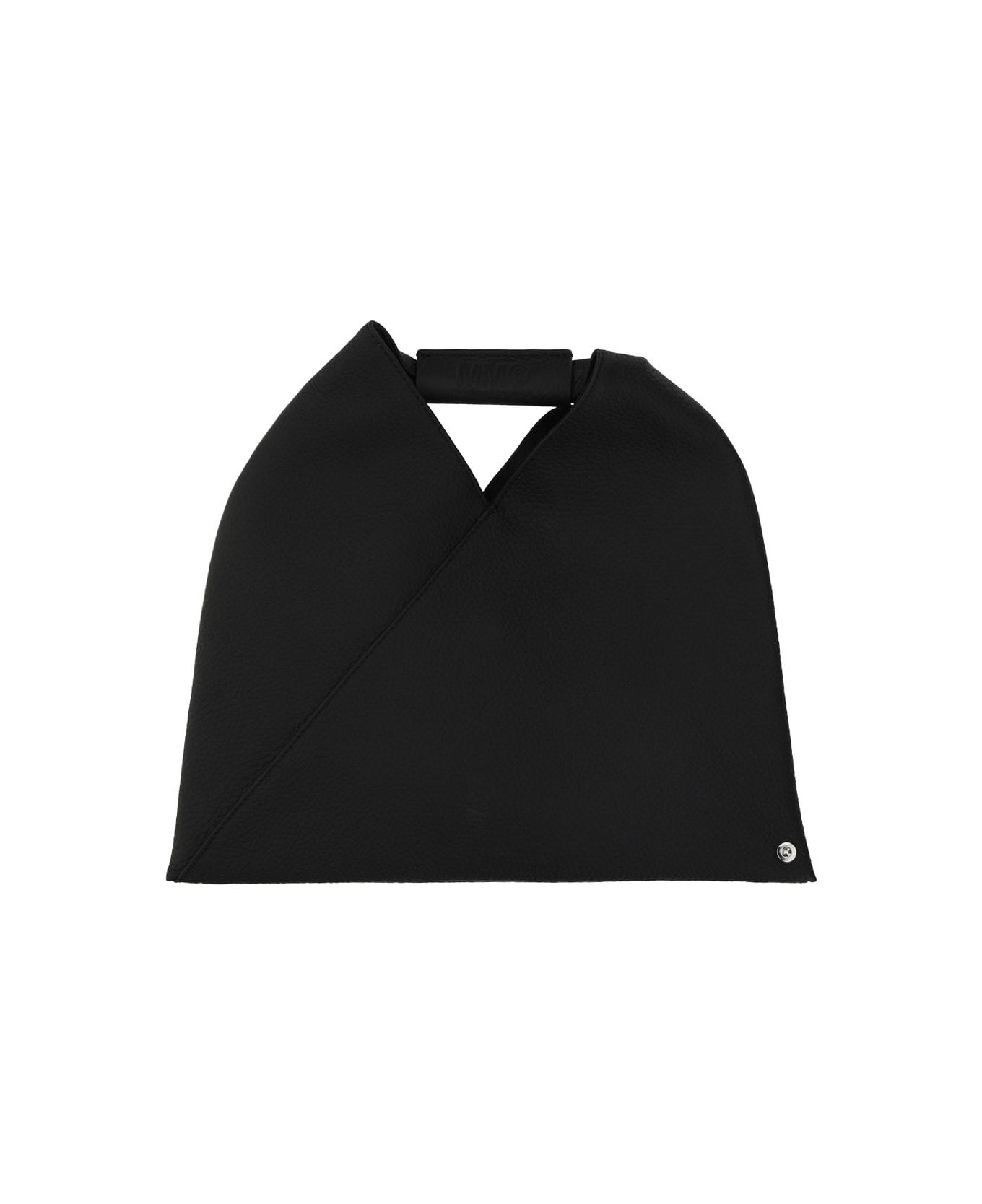 Calfskin handbag by mm6, single handle, triangular shape, embroidery detail on back, snap button closure, adjustable bottom with snap buttons, single interior compartment. Composition: 100% % Calf Leather Bos Taurus