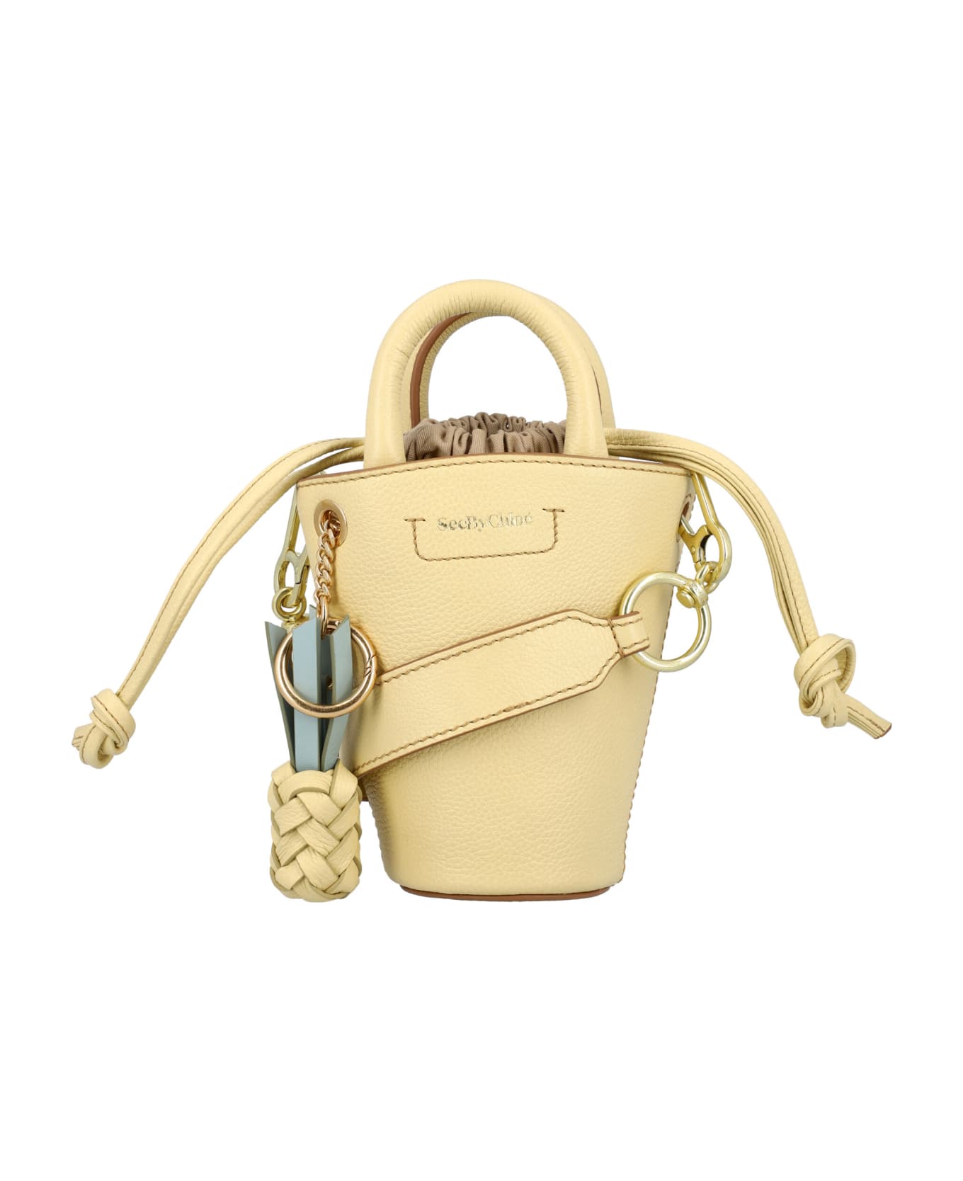 Grained Leather Cecilya Shoulder Bag By See By Chloè. Featuring: - Buckle Design - Double Top Handle - Adjustable Detachable Shoulder Strap - Gold-tone Logo Lettering At Front - Gold-tone Charm Detail With Twisted Leather Pinapple Elment - Cotton Lining With Drawstring Closure