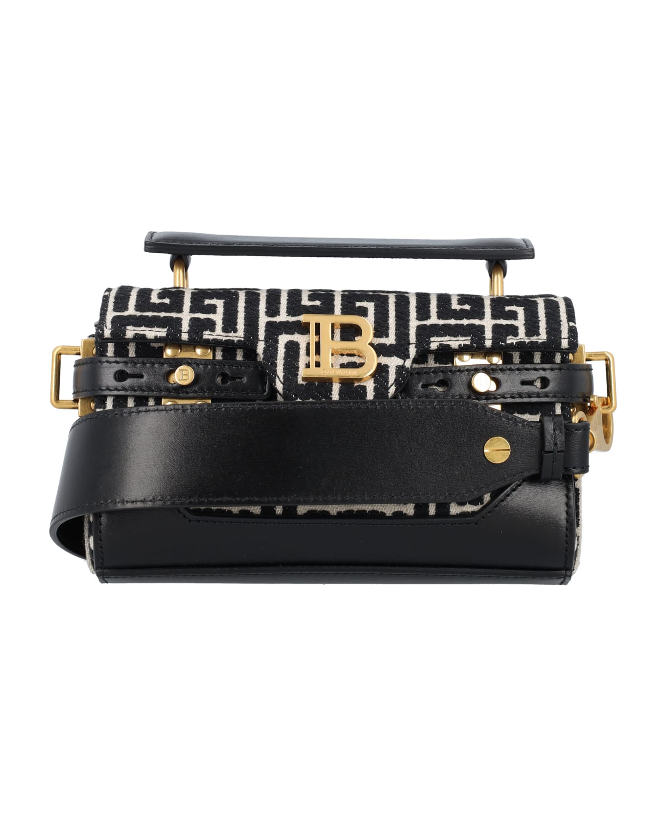 B-buzz 19 Bag In Jacquard Monogram By Balmain. Featuring: Removable And Adjustable Leather Shoulder Strap Leather Top Handle Gold B Snap Fastening Inside Zip Pocket Gold Hardware Height: 12cm Width: 19cm Depth: 7,5cm