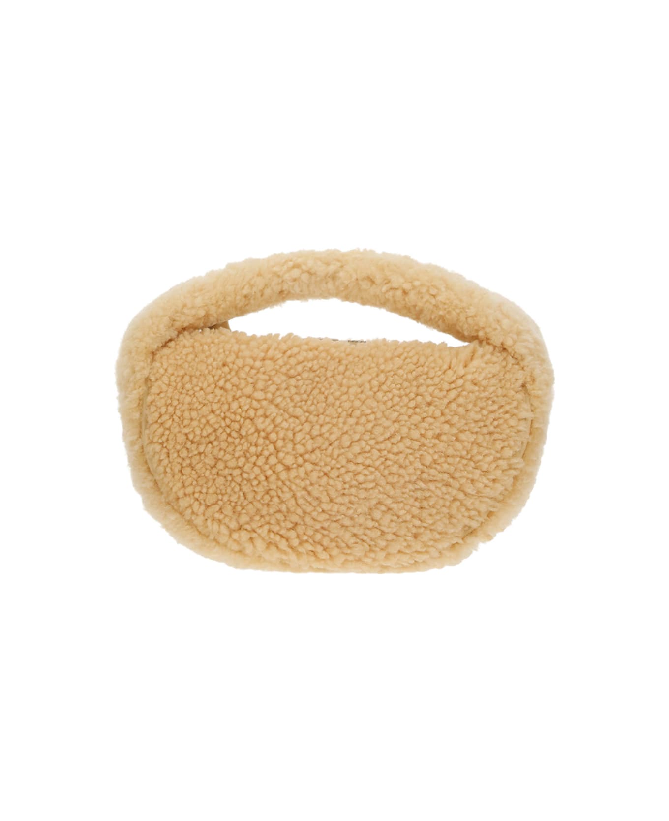 Lambskin baby crush bag by by far, single leather handle, removable chain shoulder strap, top zipper closure.