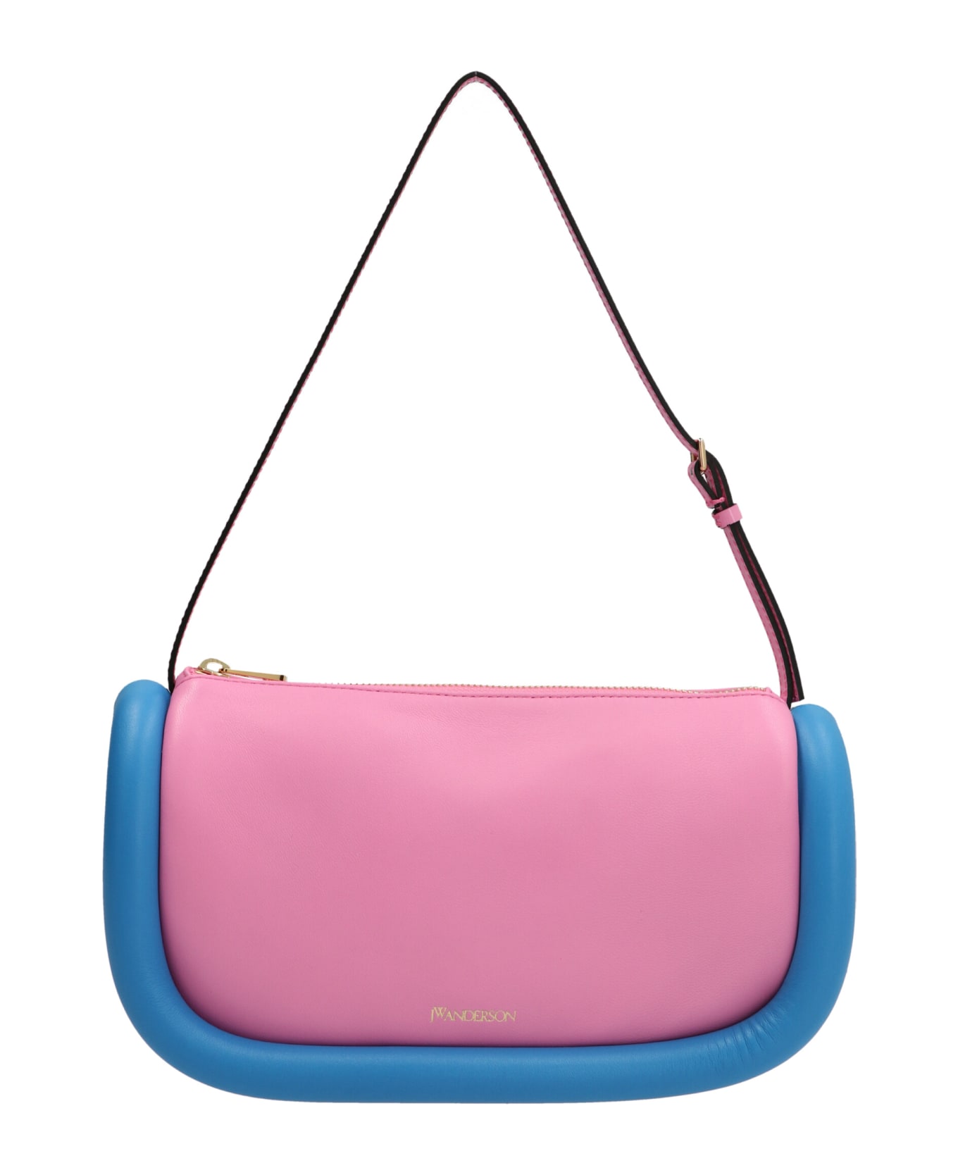 'Bumper Baguette' leather shoulder bag with contrast padded detail at the bottom, zip closure, adjustable contrast handle and logo print.